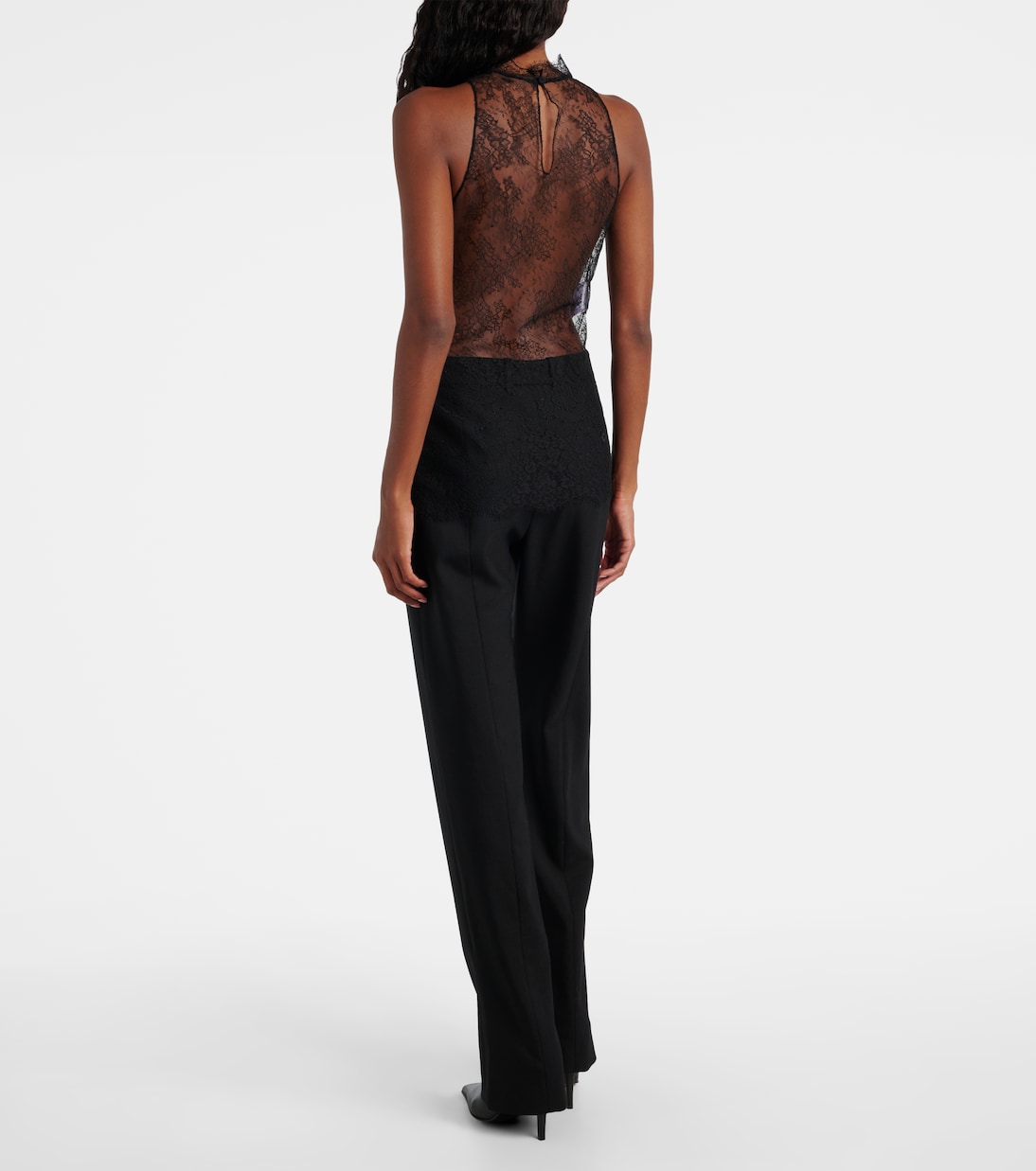 Добавьте романтики в свою повседневность с этим топом McQueen из цветочного кружева. Модель имеет круглый вырез горловины с фестончатой отделкой и сборками на груди, а также застежку-капельку на спине.