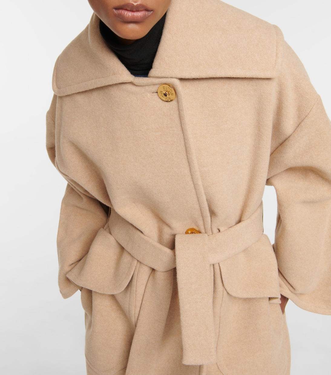 Добавьте смелого, объемного силуэта в свой гардероб верхней одежды с помощью этого удлиненного пальто от Patou. Изготовлено из двусторонней шерстяной смеси, застегивается на пуговицы, смещены от центра, пояс завязывается и широкий воротник в матросском стиле с вышитым логотипом.