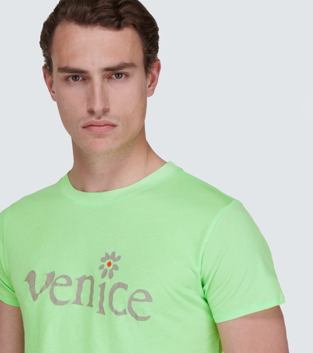 Добавьте ярких красок в свой гардероб с этой хлопковой футболкой от ERL жизнерадостного неоново-зеленого цвета. Спереди у нее яркая надпись Венеция, а сзади - Be Nice.