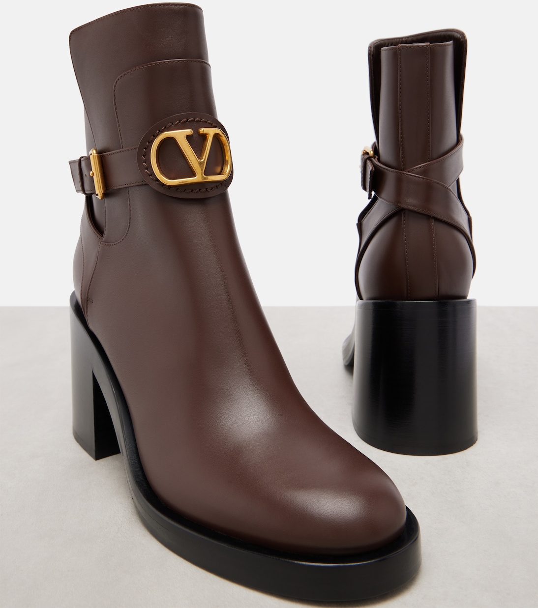 Доверьтесь Valentino Garavani и получите элегантные образы, которые легко перейдут от дневного к вечернему образу. Эти ботильоны изготовлены из гладкой кожи и имеют классический силуэт, блочный каблук 70 мм и детали в виде ремня с фурнитурой VLogo.