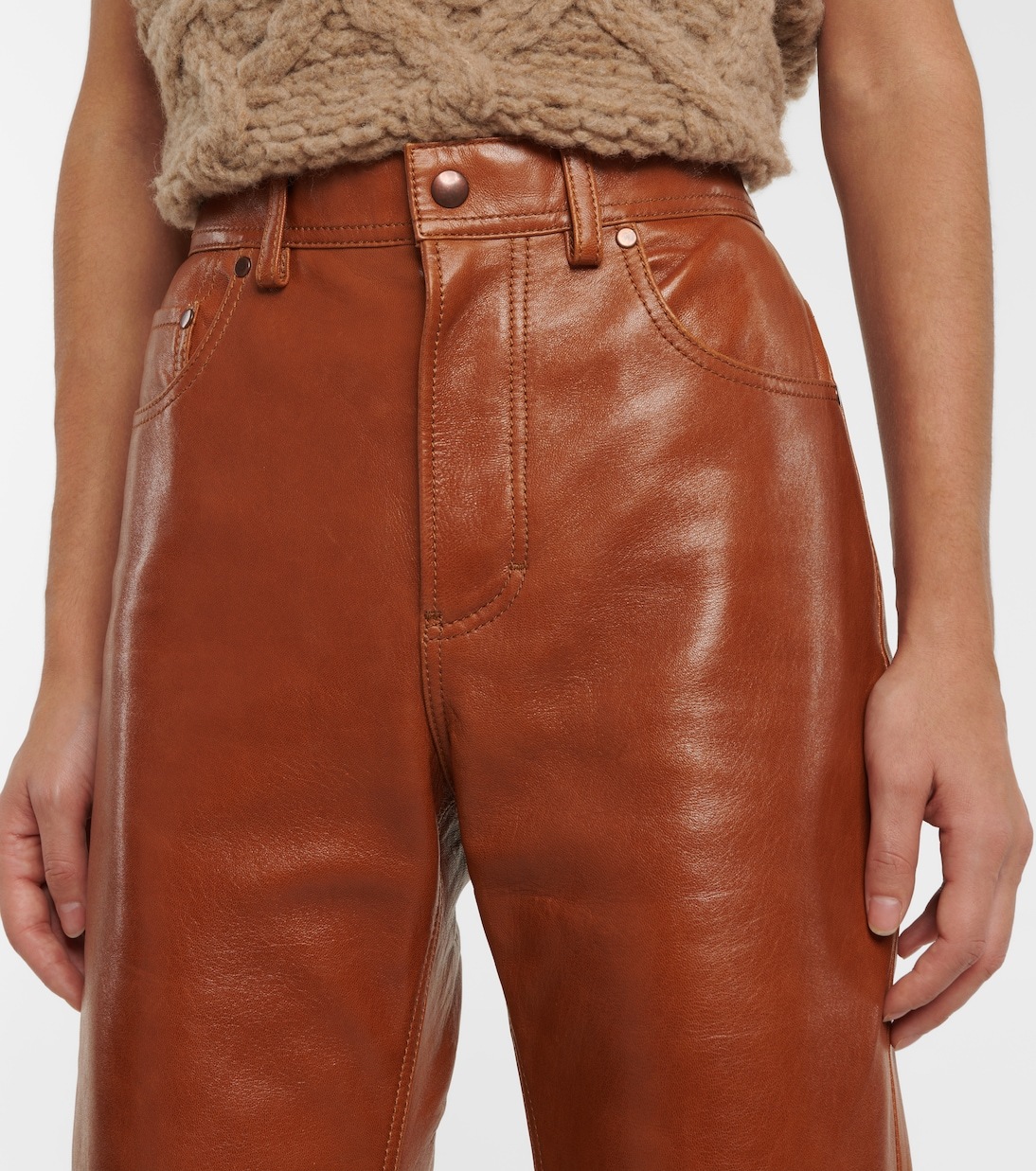 Дополните свой образ для холодной погоды этими блестящими кожаными брюками от Acne Studios. Выкройка из овчины прямого силуэта со слегка укороченными штанинами, высокая посадка на талии.