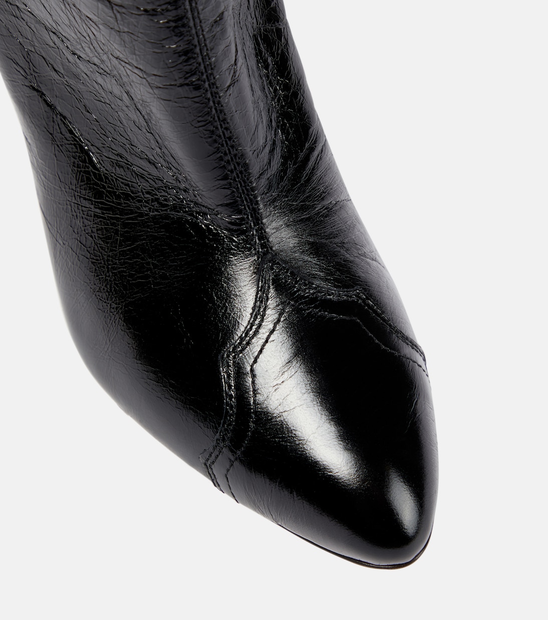 Дополните свой повседневный гардероб ботинками Lestany от Isabel Marant. Эта модель до колена, выполненная из мятой кожи, стоит на низком каблуке и украшена строчками в западном стиле на заостренных носах.