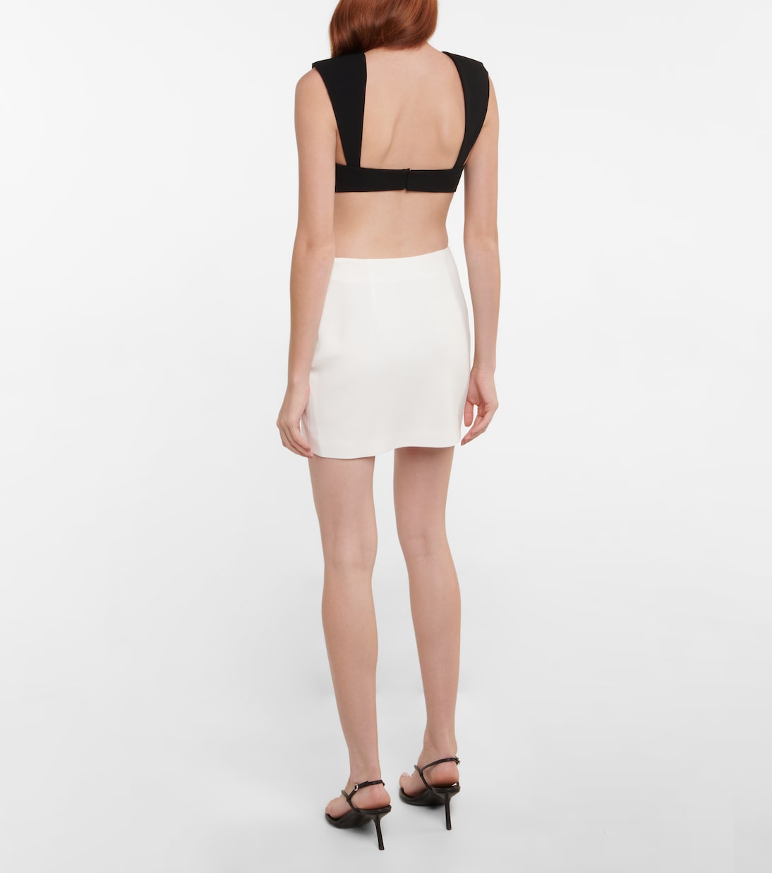 Если вам нужен смелый дизайн, который привлечет всеобщее внимание, обратите внимание на эту мини-юбку от Mônot. Модель белого цвета с открытым округлым вырезом сбоку.