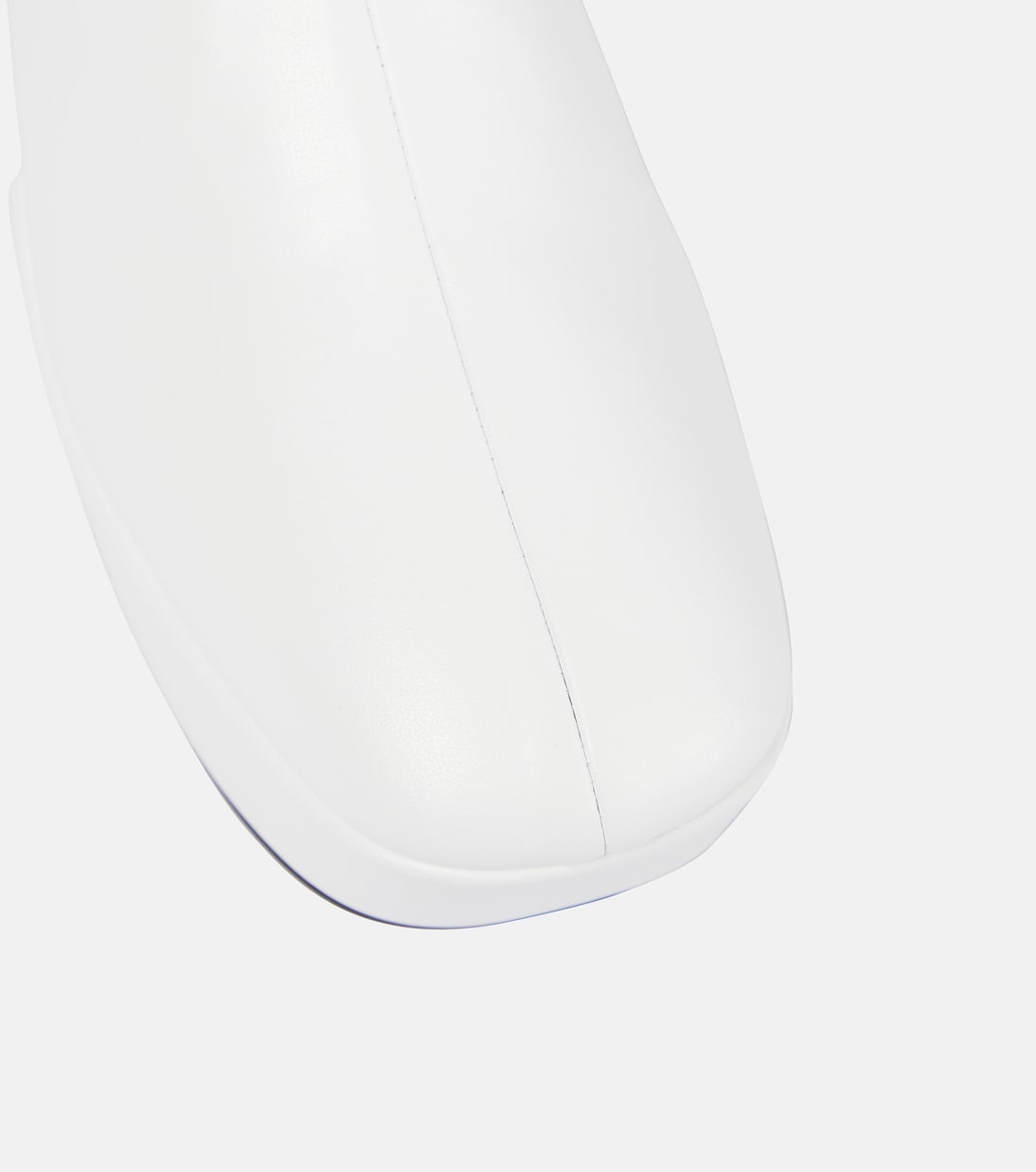 Если вам нужна по-настоящему эффектная обувь, обратите внимание на эти высокие сапоги от Prada, сошедшие прямо с подиума. Изготовлены из белой искусственной кожи, на платформе и с квадратным носком для оптимальной прохлады.