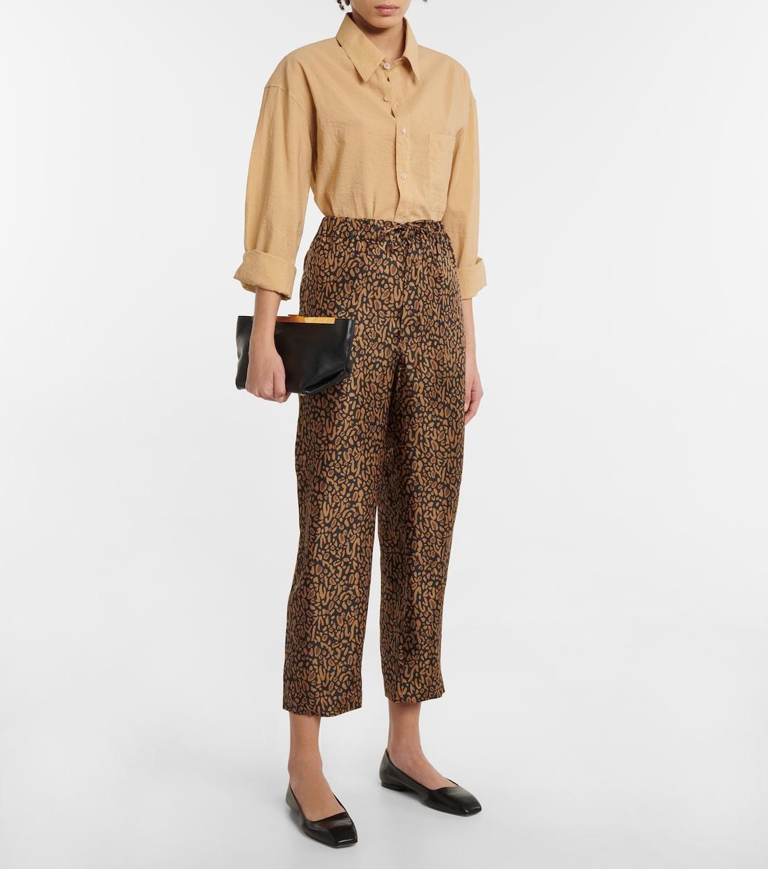 Если вам нужны уверенные и изящные силуэты, обратите внимание на бренд Nanushka из Будапешта. Эти брюки изготовлены из блестящего шелка с современным анималистичным принтом.