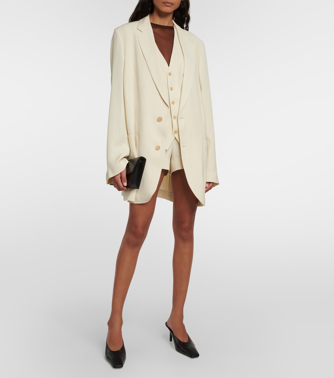 Жилет Wyck от Петара Петрова изготовлен из легкой шелковой ткани, имеет облегающий крой, застегивается на пуговицы спереди и имеет прорезные карманы. Полностью белый дизайн дополнен струящимся шелком с блестящей отделкой.