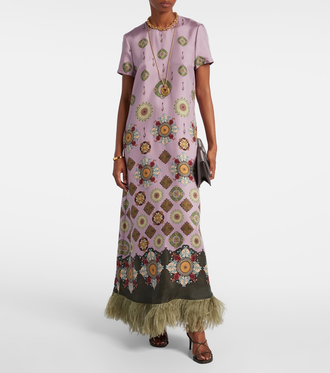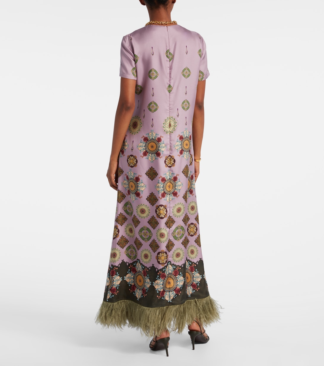 Игривое и шикарное макси-платье Swing от La DoubleJ создано для особых случаев. Изготовленный из шелкового твила, этот дизайн отличается фирменным принтом Nucleus Placée и роскошной отделкой из перьев.