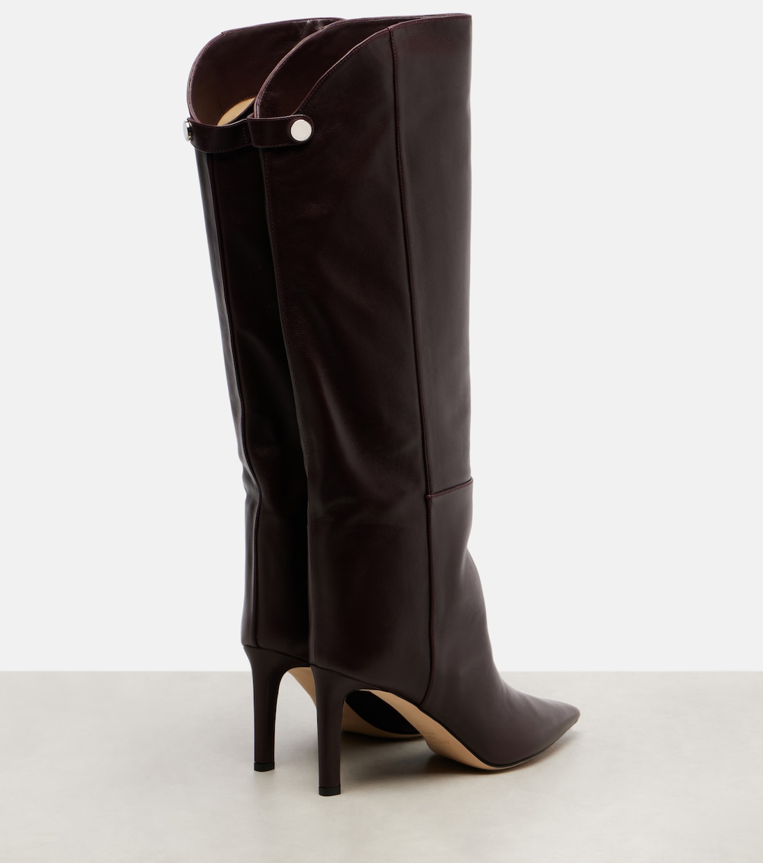 Изготовленные в Италии из гладкой темно-бордовой кожи, высокие сапоги Jimmy Choo Alizze демонстрируют вневременной силуэт, вдохновленный конным спортом, с заостренным носком, тонким каблуком 85 мм и изысканной застежкой на ремешке сзади.