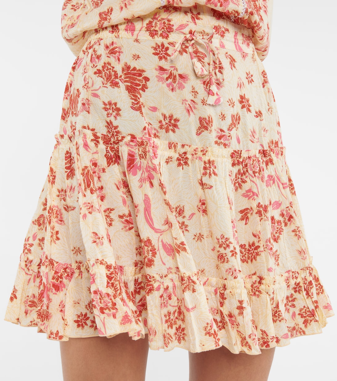 Изделия Poupette St Barth, как и мини-платье Clara, неизменно навевают летнее настроение. Красно-бледно-желтый цветочный принт доходит до бедер, а многоярусная юбка А-силуэта облегает тело. Вырез с кисточками и оборкой идеально обрамляет зону декольте.