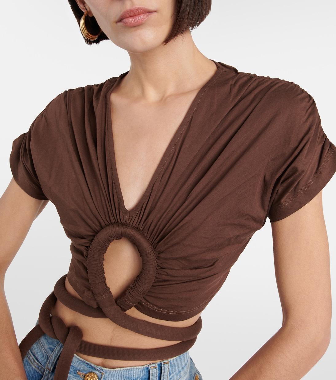 Излучайте непринужденную элегантность в этом драпированном топе от Balmain. Изготовленный из мягкого трикотажа, он имеет укороченный силуэт и отличается извилистым вырезом и скользящими шнурками, украшенными гравировкой логотипа.