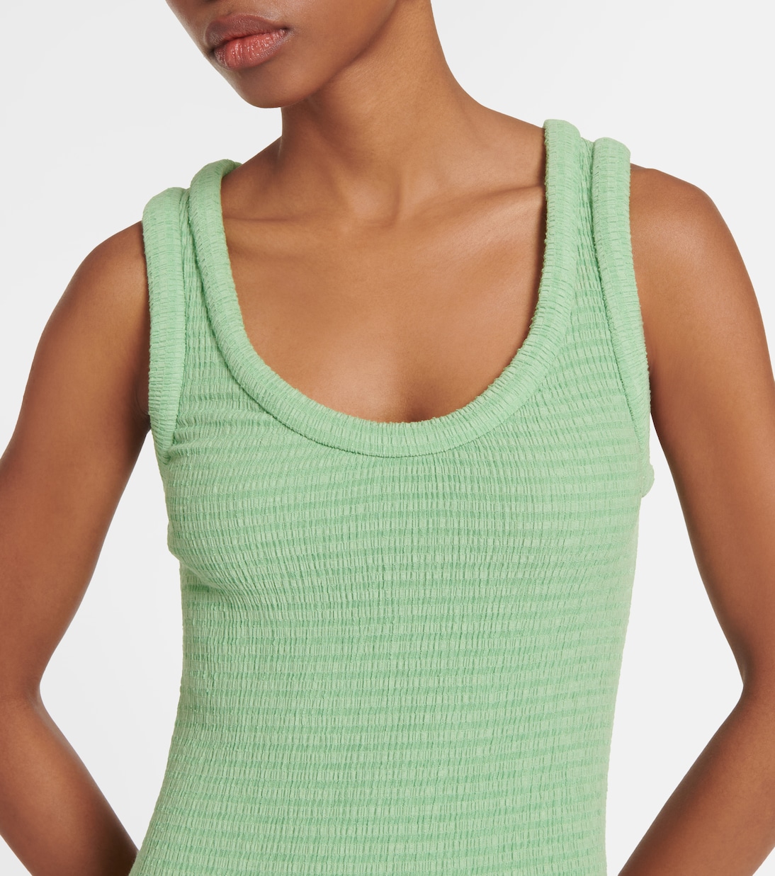 Изысканный минимализм Jil Sander характеризуется четкими линиями и точным расположением деталей. Это платье миди сшит из трикотажной ткани с обтекаемым силуэтом и отворотом по подолу.