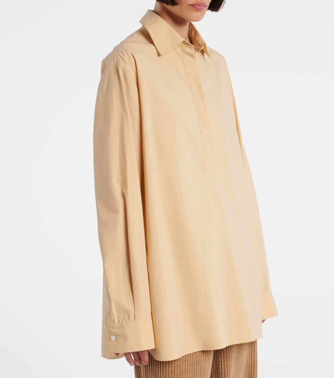 Изысканный пошив - основа идентичности The Row. Бренд получил свое название в честь Сэвил-Роу, лондонского района ателье по пошиву одежды на заказ. Рубашка Margan классического дизайна сшита из хлопкового поплина и дополнена потайной планкой с пуговицами.