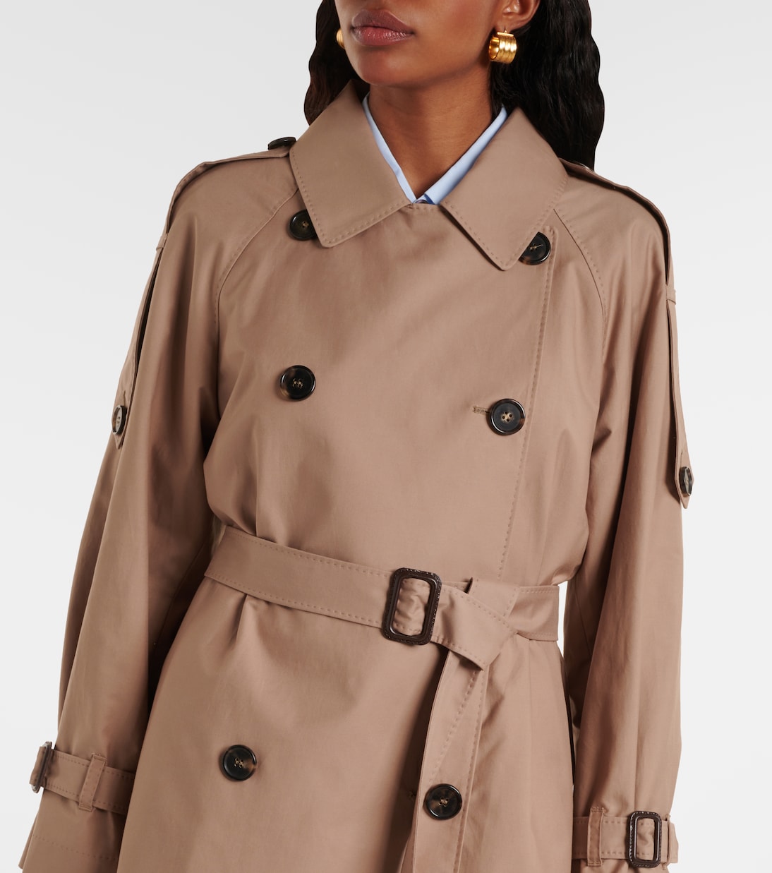 Имея богатую историю производства, Max Mara олицетворяет собой квинтэссенцию итальянской изысканности и мастерства. Тренчкот Caroline, изготовленный из хлопковой смеси, имеет слегка укороченную длину и съемный пояс.