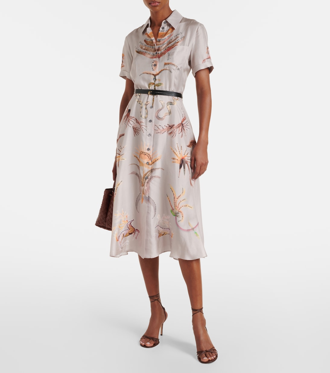 Каждое изделие Altuzarra, созданное под влиянием мультикультурного воспитания основателя компании Джозефа Альтузарры, говорит о силе продуманной элегантности. Платье-рубашка Kiera тщательно изготовлено из чистого шелка в подчеркивающий фигуру А-силуэт с тонким кожаным поясом на талии и интригующим, замысловатым принтом.