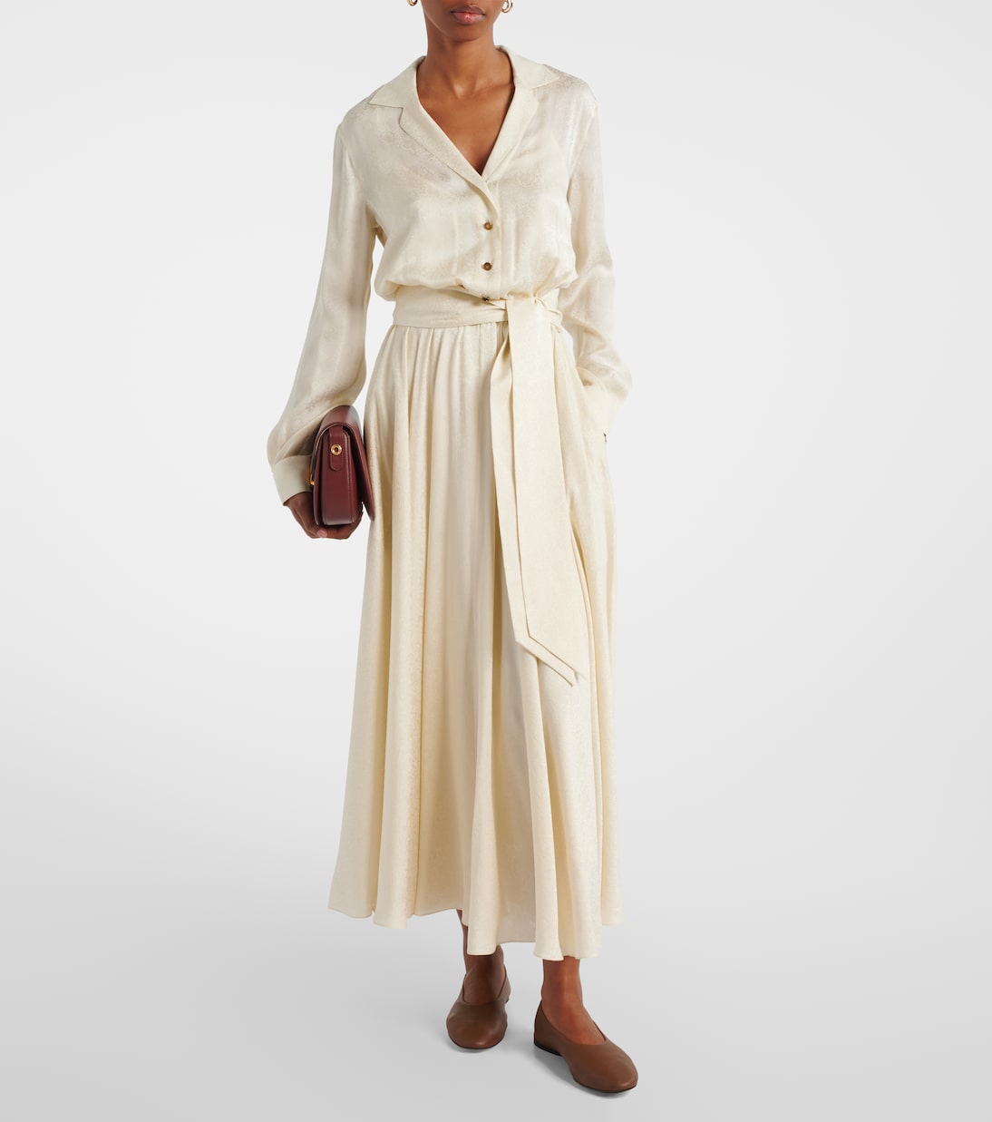 Каждый дизайн Loro Piana сочетает в себе лучшее итальянское мастерство и лучшие материалы. Платье-рубашка Nevis из шелка с расклешенной юбкой, длинными рукавами и завязывающимся поясом для создания эффекта утягивания.
