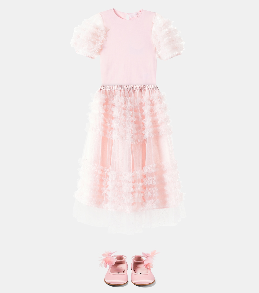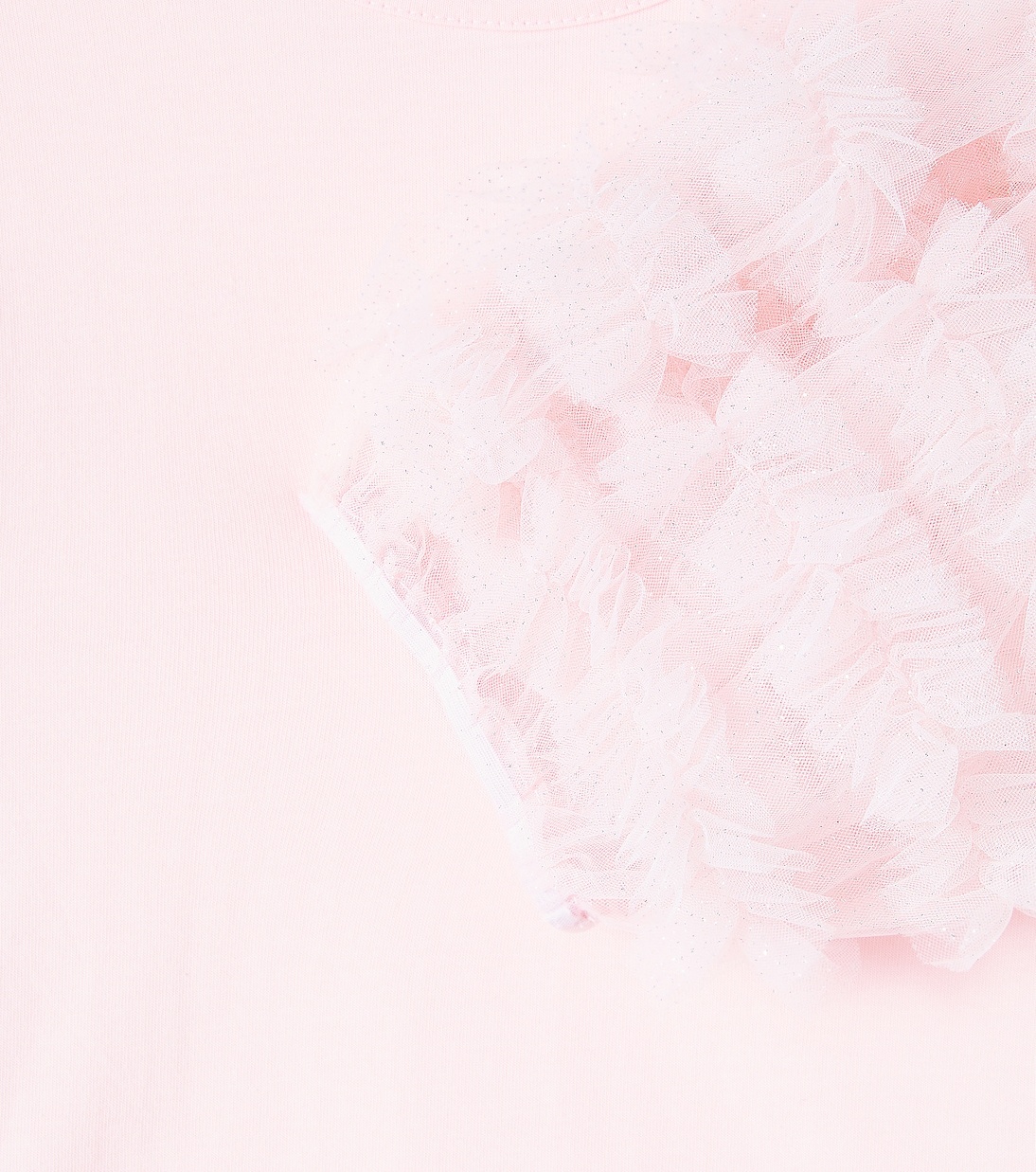 Каждый дизайн Tutu Du Monde создается вручную, от окрашивания до декорирования, и на это уходит до 120 часов. Топ Diamond Dust из мягкого хлопкового трикотажа дополнен рукавами из тюля с оборками.