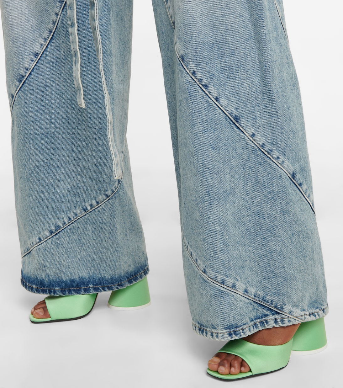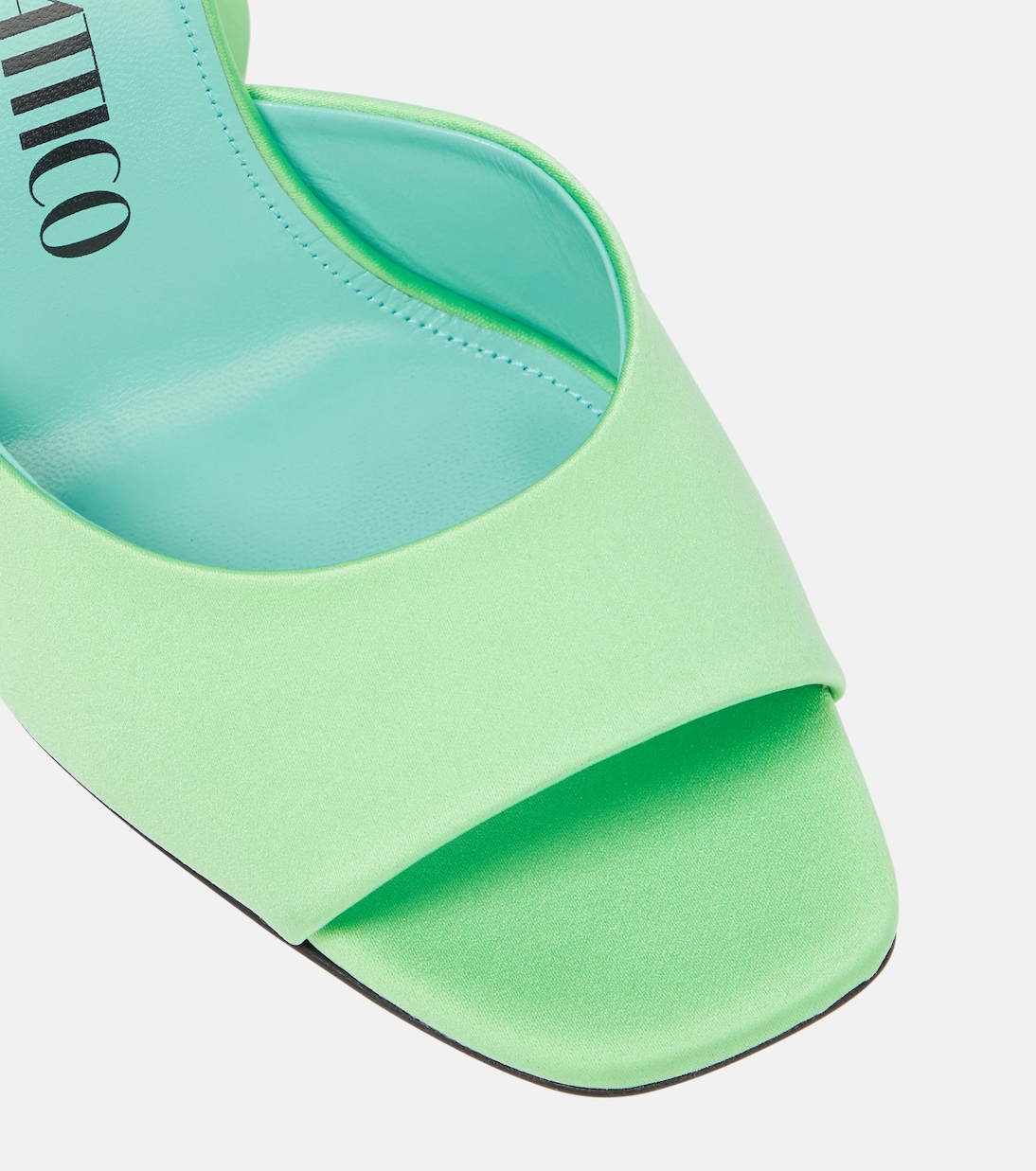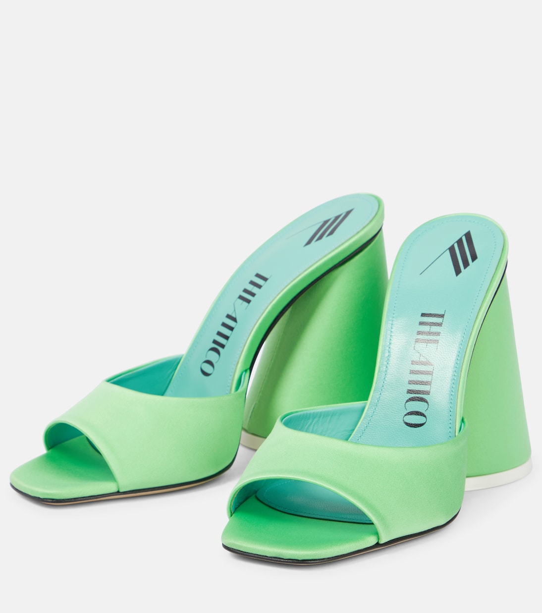 Как и любая обувь от The Attico, мюли Luz - гламурный образ. Изготовлены из мятно-зеленого атласа с закругленными носами и характерным коническим каблуком.