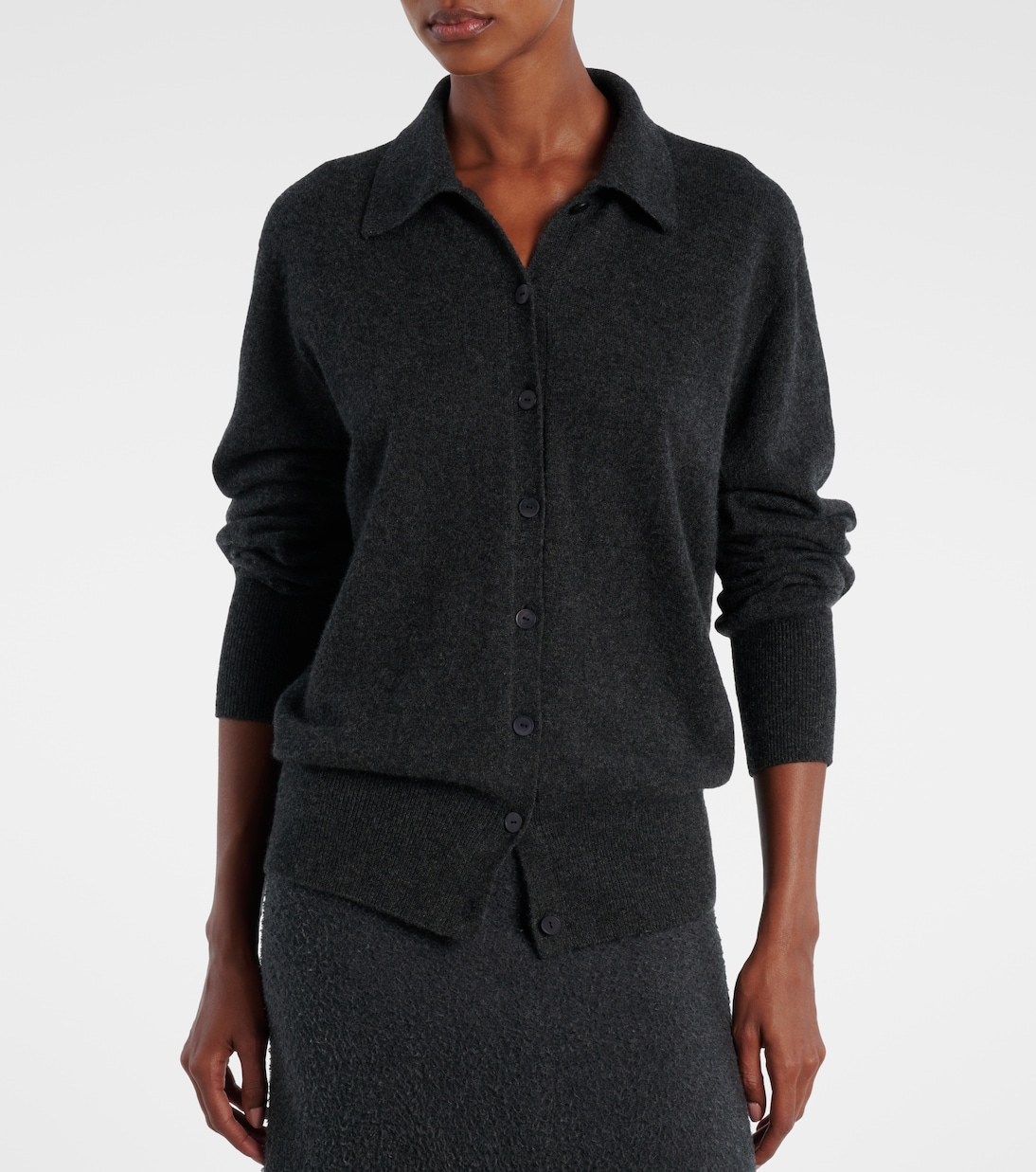 Кардиган Lillia - классический дизайн от The Row со слегка свободным силуэтом и изысканной эстетикой. Он имеет воротник поло и детали из ребристой вязки.