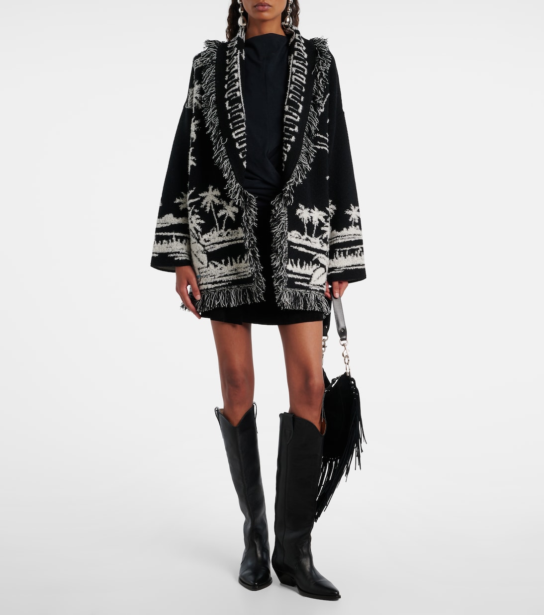 Кардиган Palm Grove Tales от Alanui выполнен из смеси кашемира и шерсти двойной жаккардовой вязки. Вдохновленная вулканическим пейзажем Гавайев, эта стильная вещь имеет бахромчатые края, прорезные карманы и съемный пояс.