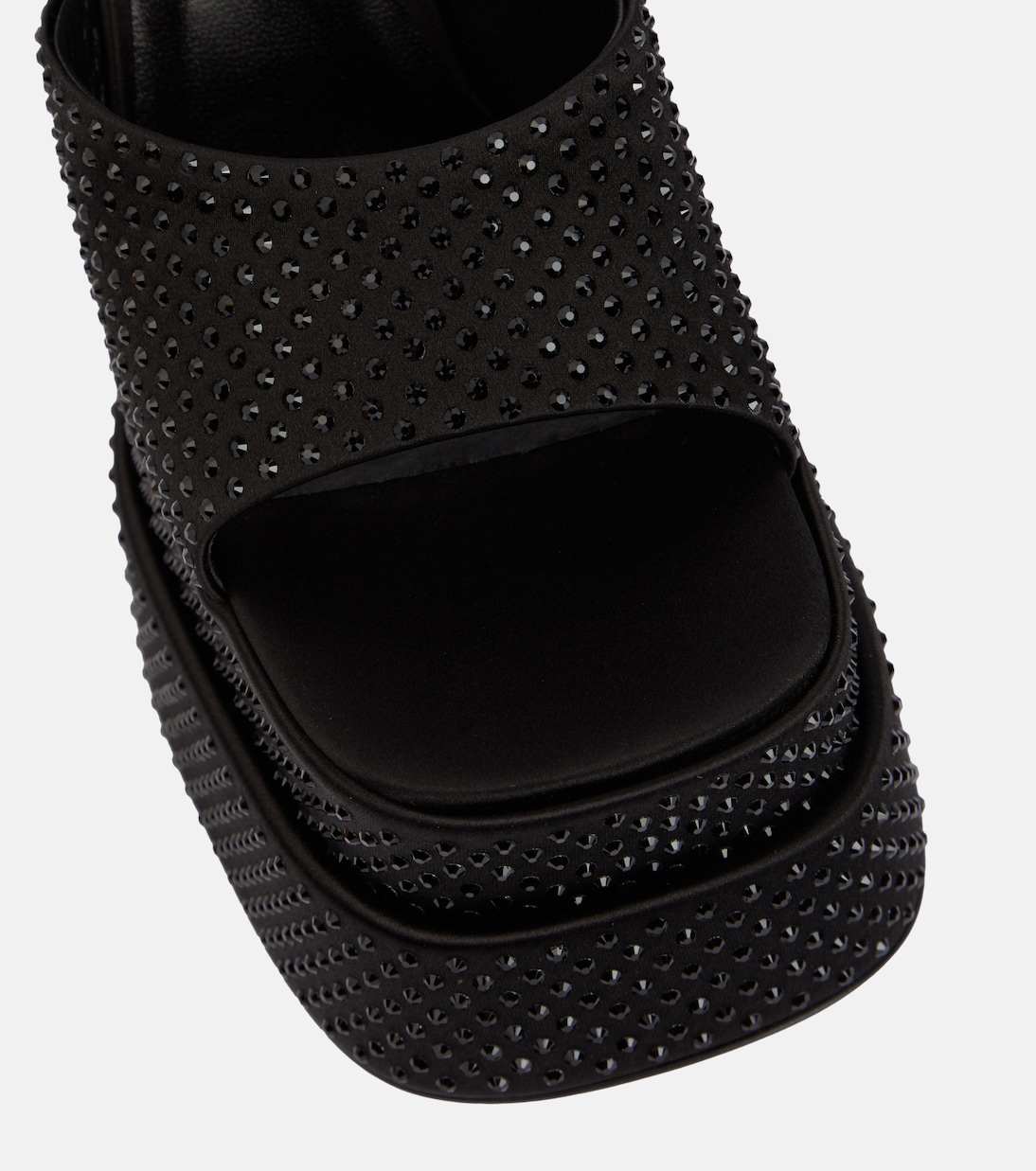 Квадратные босоножки с открытым носком Medusa Aevitas от Versace являются олицетворением выразительного гламура. Они сделаны из декорированного атласа с высокими двойными платформами и тонкими ремешками на щиколотке, украшенными кристаллами и подвесками в виде Медузы.