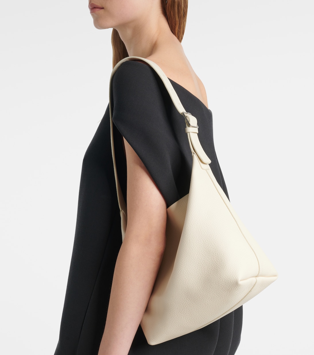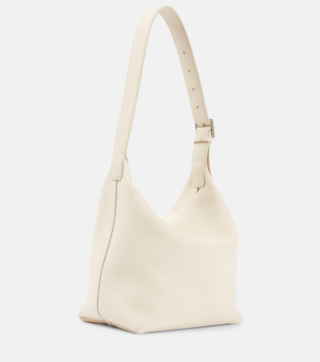 Кожаная сумка через плечо Isa от The Row воплощает глубокую привязанность бренда к мастерству и вневременному дизайну. Сумка оснащена регулируемым плечевым ремнем с серебряной фурнитурой, а ее свободный силуэт легко облегает тело, создавая элегантный, но в то же время сдержанный вид.