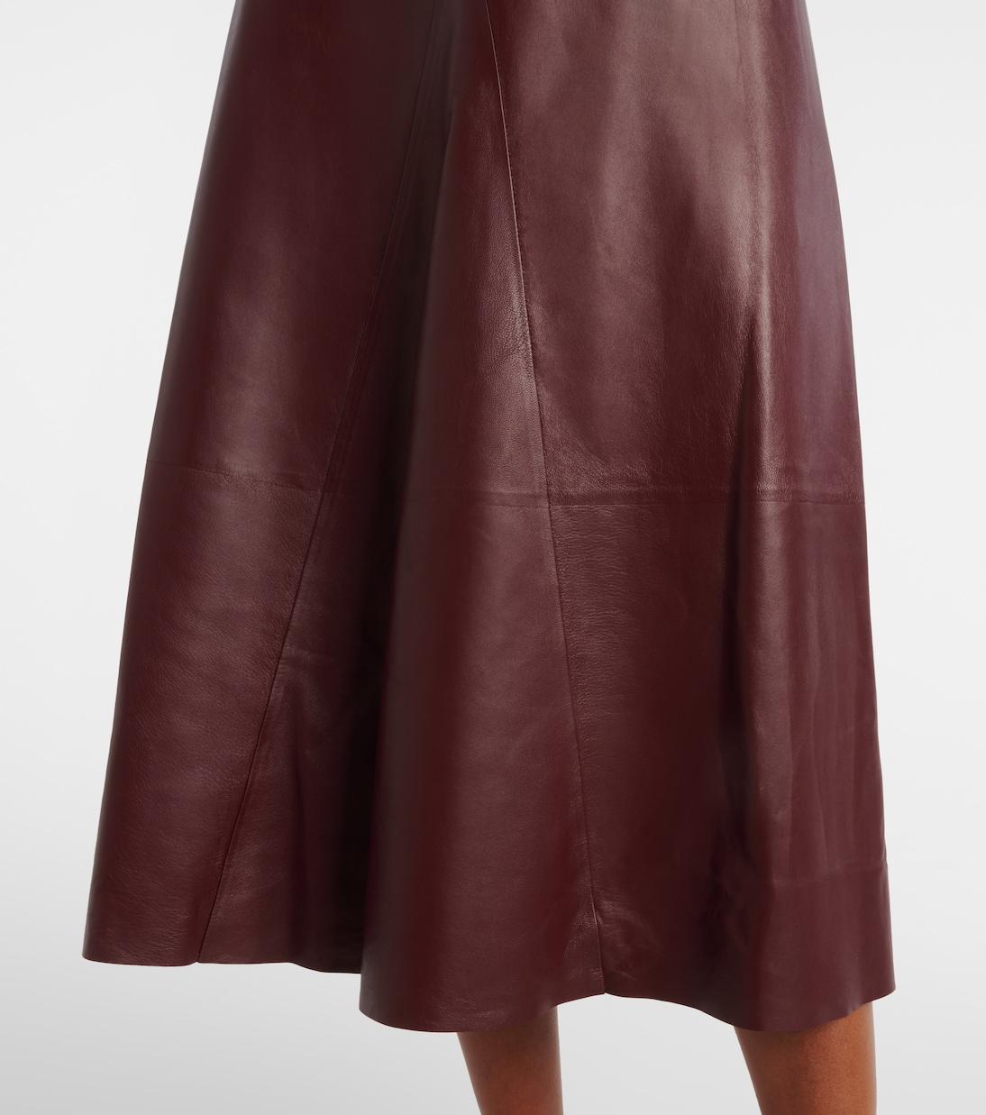 Кожаная юбка миди Fforme изготовлена в Италии, имеет А-образный силуэт и потайную молнию. Чистая конструкция отражает приверженность бренда архитектурным формам и изысканной материальности.