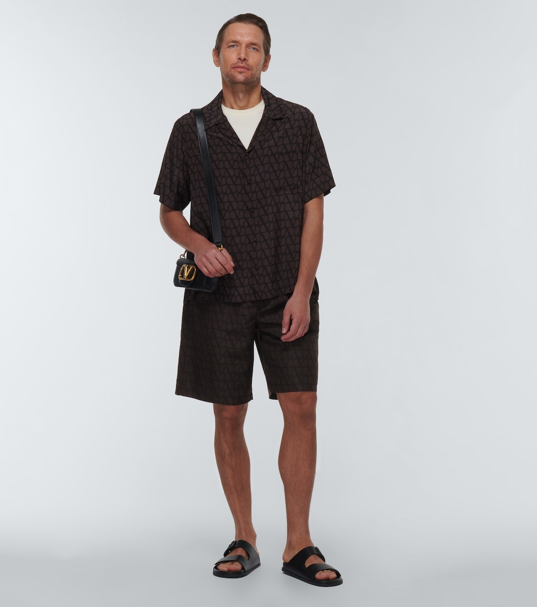 Коллекция Toile Iconographe от Valentino представляет узор VLogo, вдохновленный стилем 70-х годов, который производит поразительное визуальное впечатление. Эта рубашка в курортном стиле выполнена из шелка и имеет отложной воротник, нагрудный карман и короткие рукава.