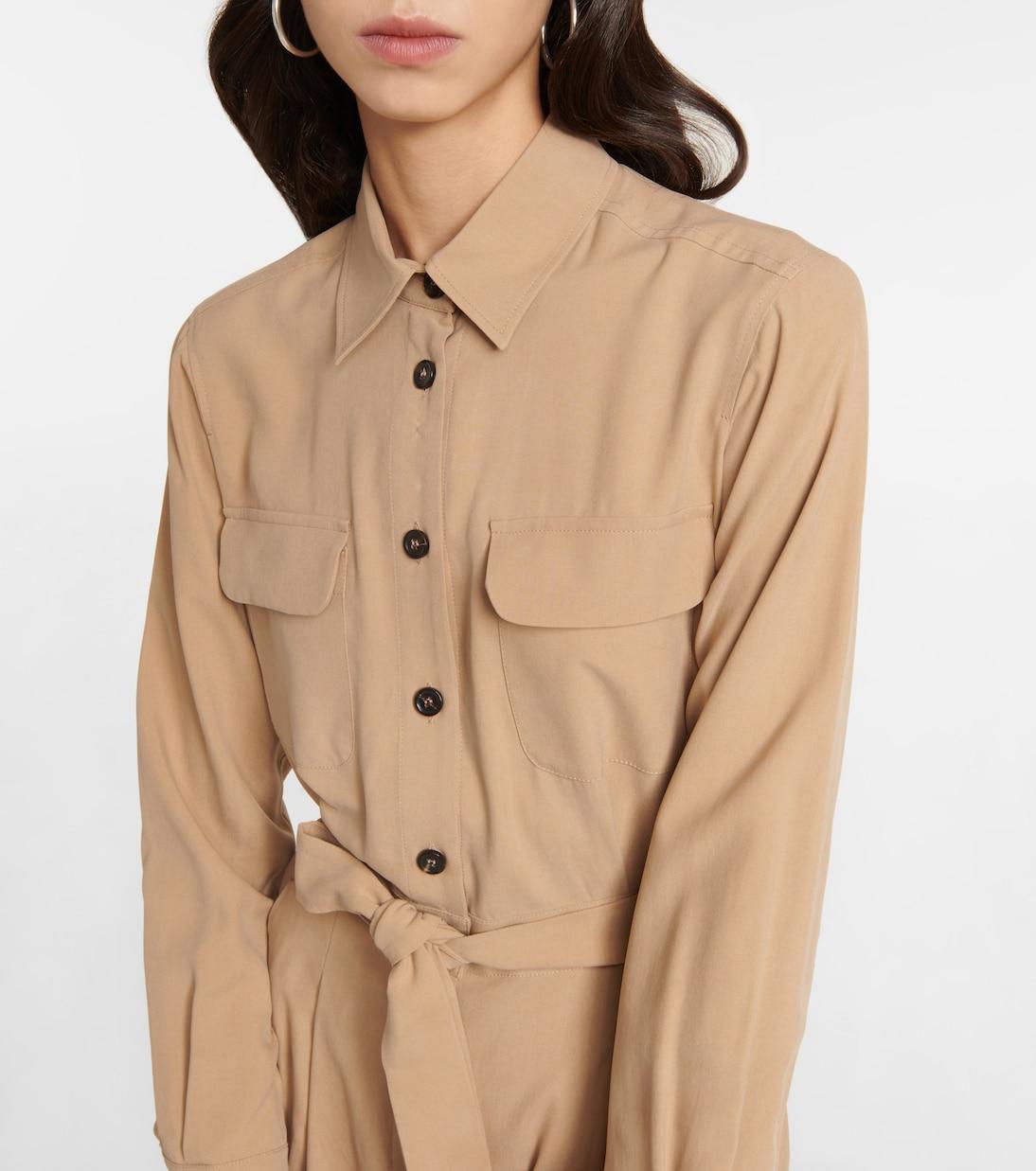 Комбинезон Madre из свежего, легкого шелка имеет прямые брюки до колена, застегивающийся на пуговицы верх и пояс в тон, который подчеркивает талию.