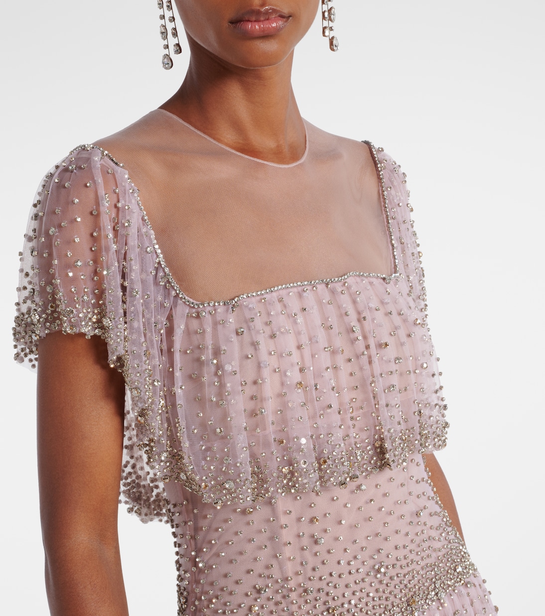 Компания Costarellos, живущая в Афинах, создает воздушные вечерние наряды, черпая вдохновение в искусстве Древней Греции. Это платье с многоуровневым силуэтом и прозрачным лифом украшено потрясающими кристаллами, что придает ему сказочную элегантность.