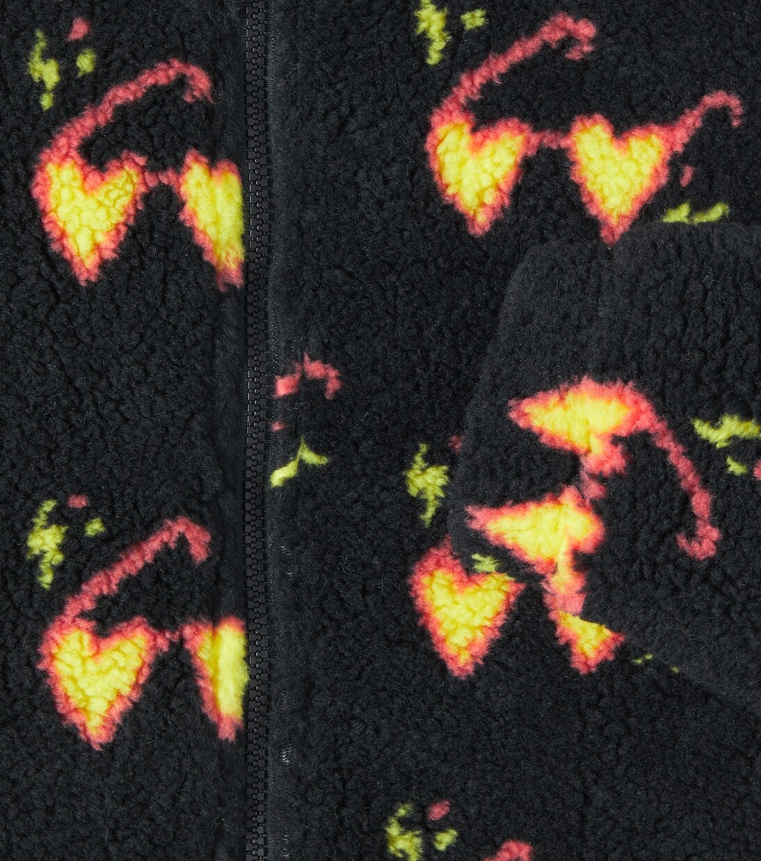 Компания Jellymallow, название которой образовано от сочетания слов желе и зефир, создает модели, воплощающие невинность и волшебство детства. Куртка Heartglasses сшита из мягкого флиса с воротником-стойкой и яркими деталями по всей длине.