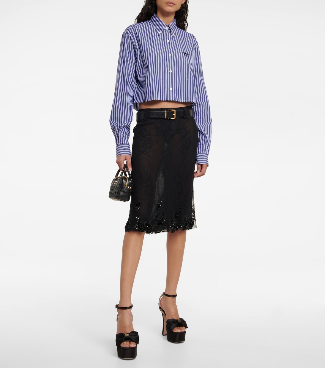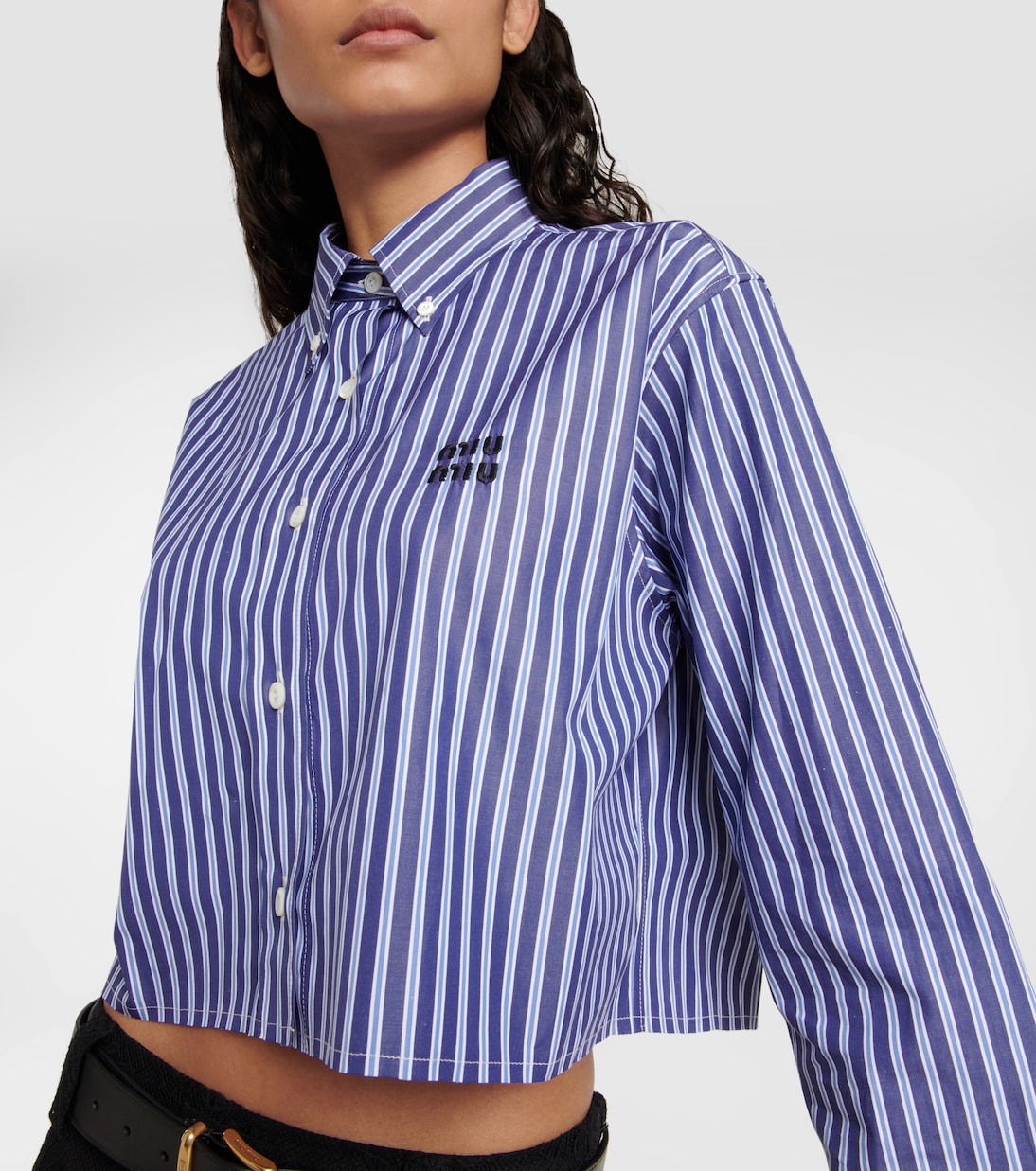 Компания Miu Miu в совершенстве овладела искусством создания безупречно женственных вещей, что в очередной раз доказывает эта рубашка. Эта модель с длинными рукавами изготовлена из хлопка и может быть укорочена.
