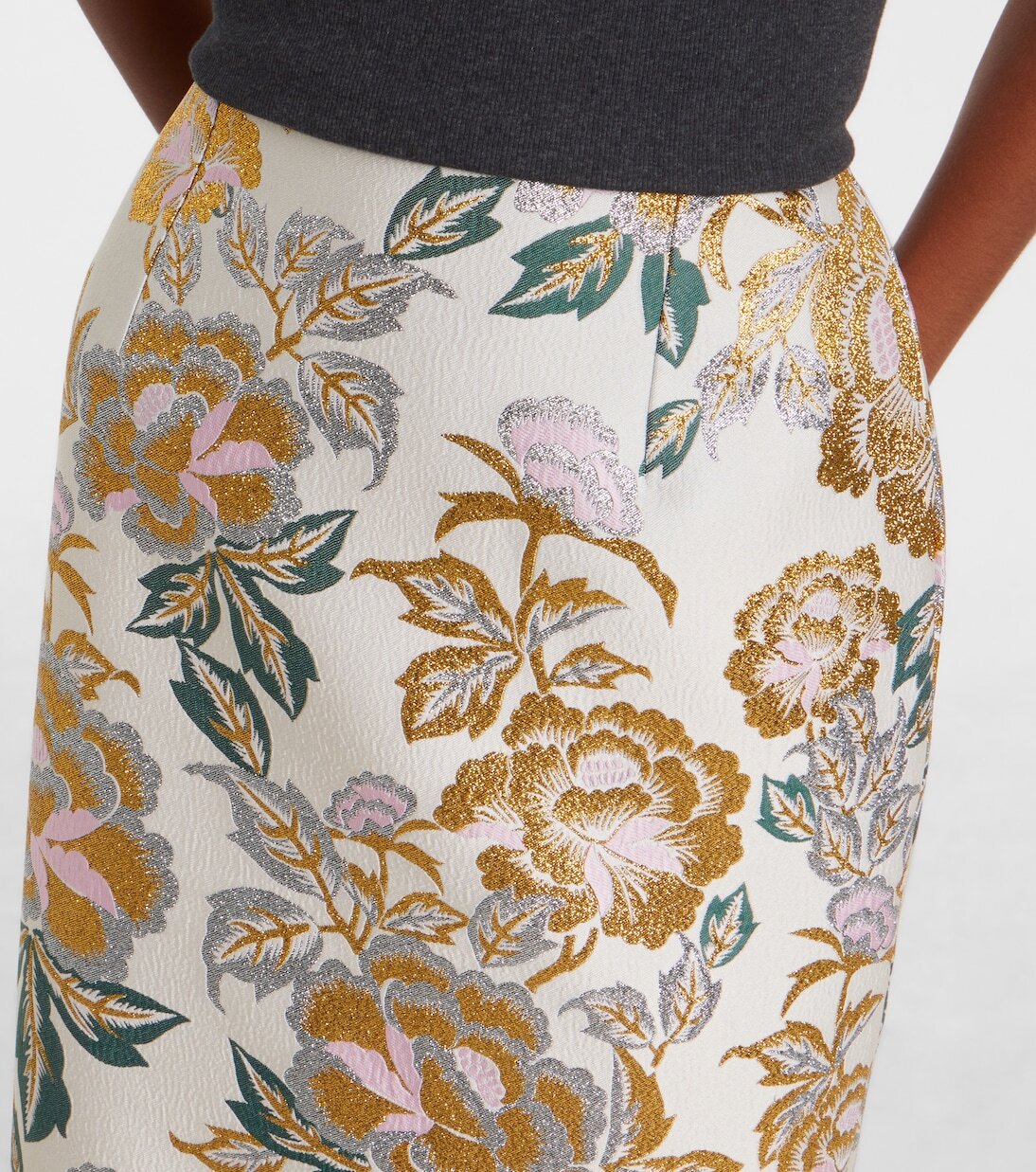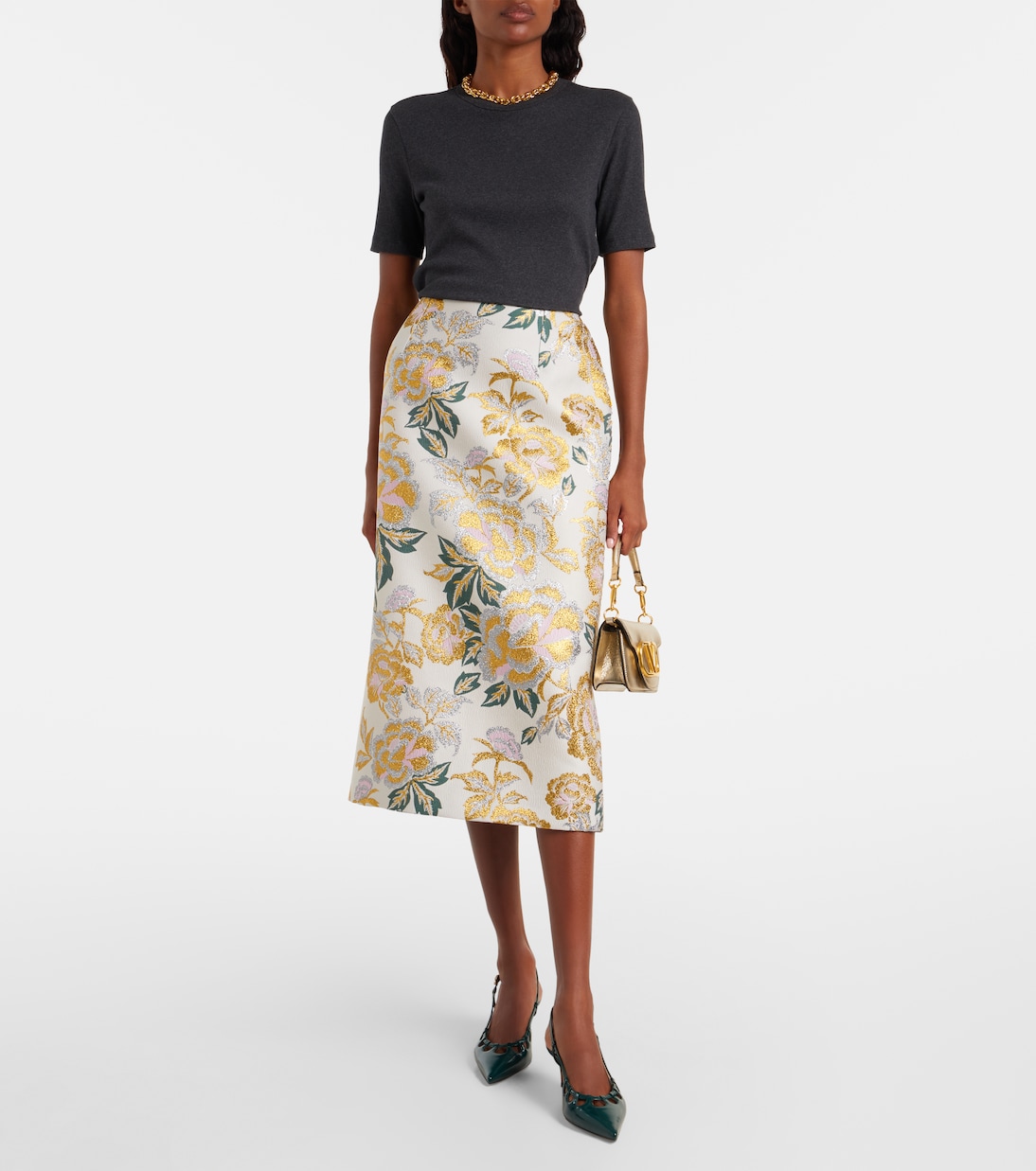 Коронованный как самая стильная женщина всех времен, одноименный бренд Каролины Эрреры обладает непревзойденным мастерством в области моды. Эта роскошная юбка миди скроена из роскошного жаккарда, замысловато сотканного из серебряных, зеленых и золотистых нитей в винтажном цветочном узоре.