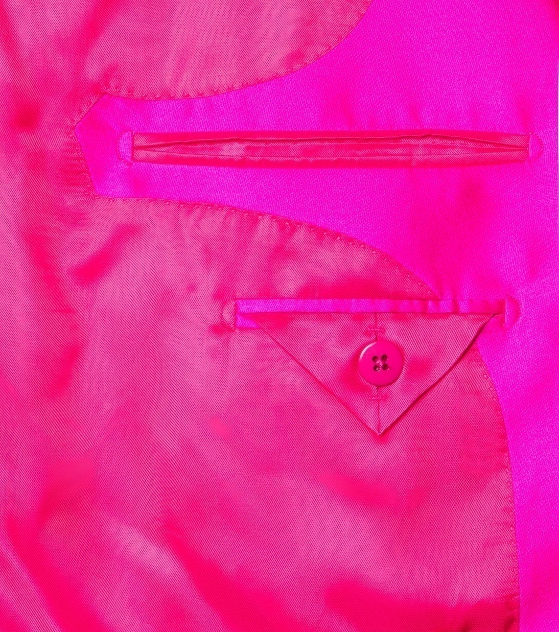 Костюмы Тома Форда отличаются тщательным вниманием к деталям и долей высокооктанового гламура - качества, в полной мере демонстрируемые блейзером Dylan. Этот двубортный фасон, выполненный из яркого атласа цвета фуксии, отличается острыми отворотами для создания структурированного эффекта.