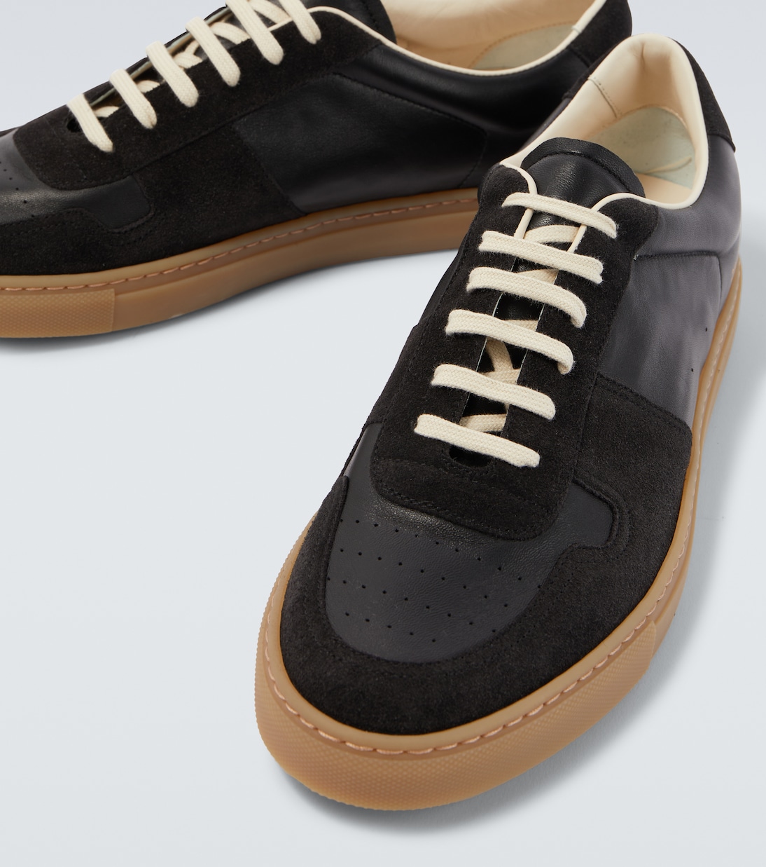 Кроссовки Achilles от Common Projects обновлены за счет новой композиции из телячьей кожи и замши. Обновленная версия остается верной оригинальному стилю с закругленными носками и резиновой подошвой.