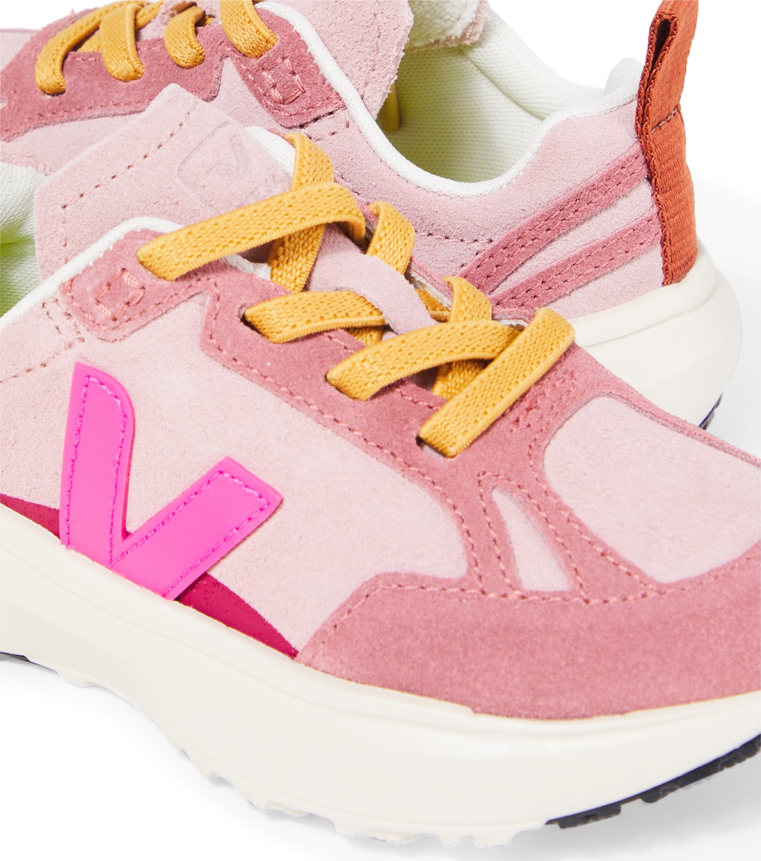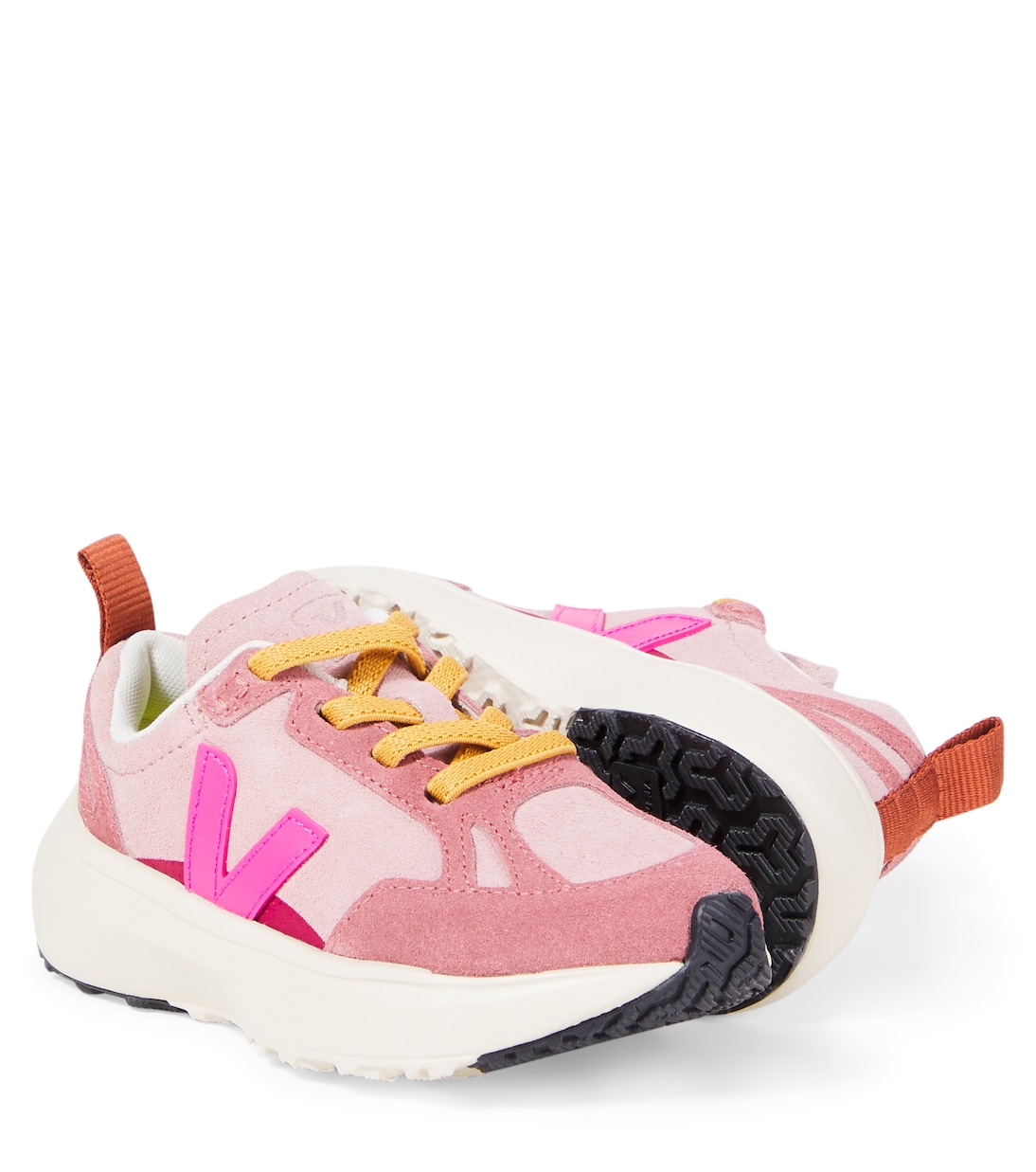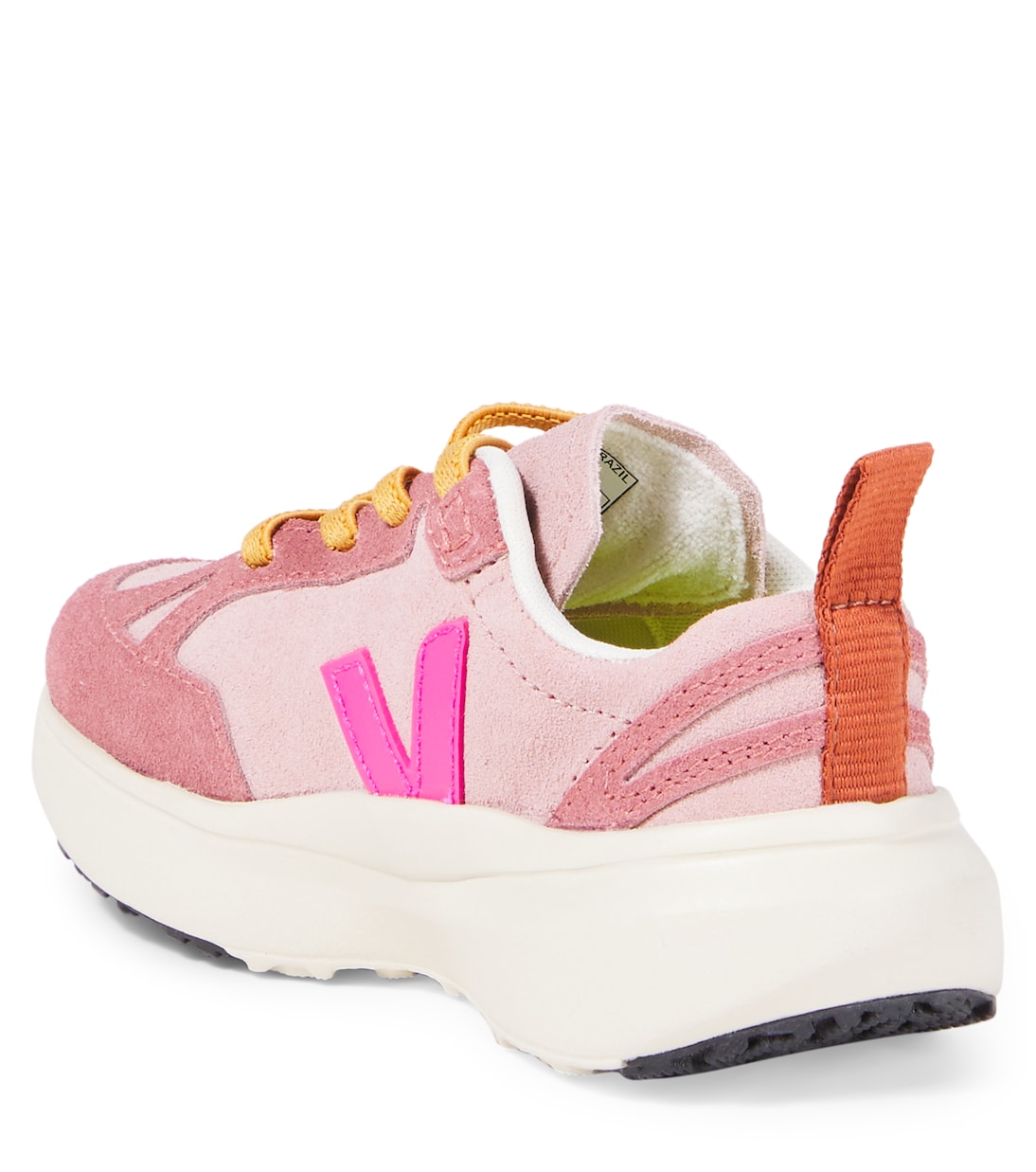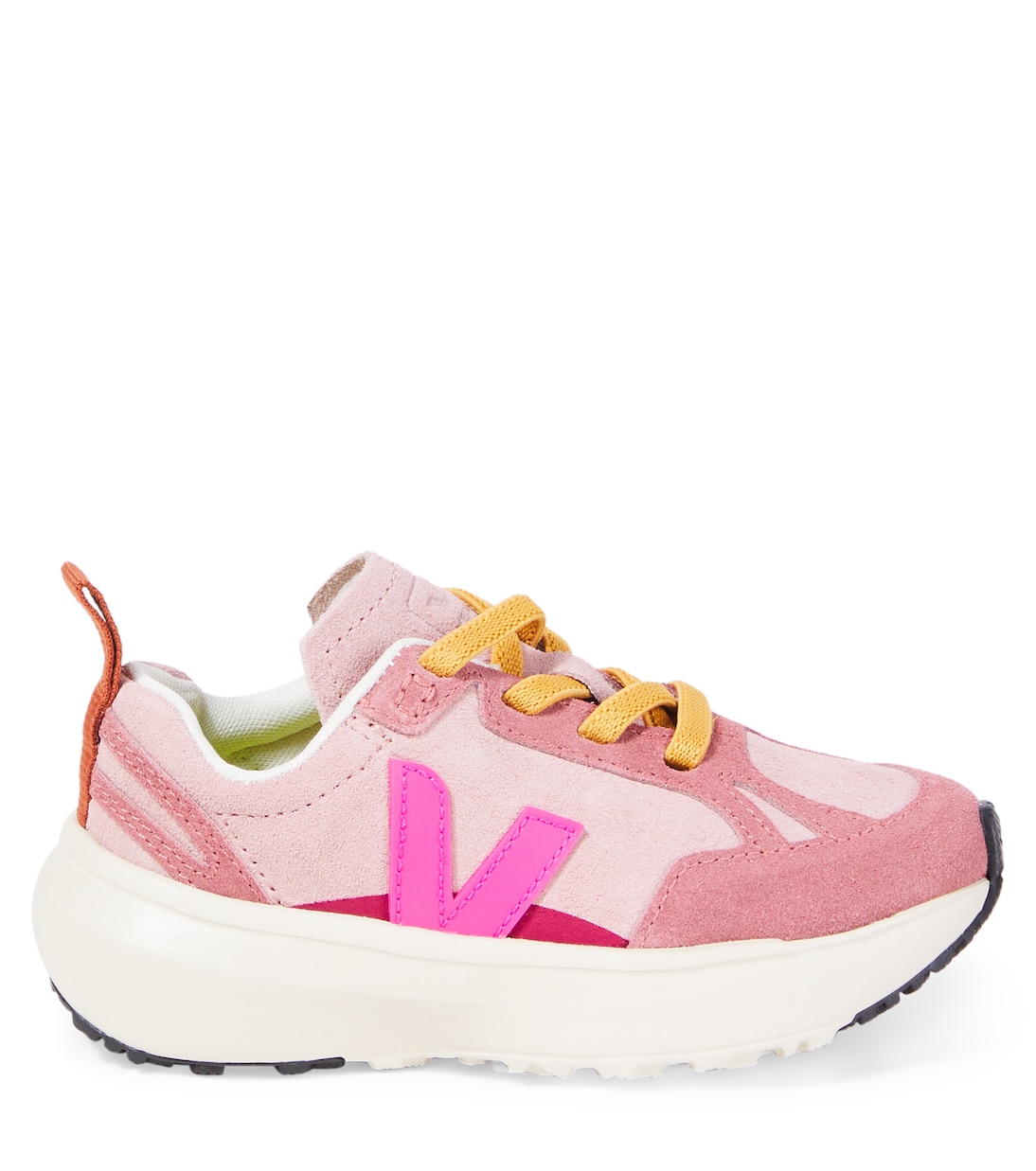 Кроссовки Canary от Veja Kids украшены фирменной буквой V по бокам и внутренними эластичными шнурками. Эта пара изготовлена из гибких панелей замши в дополнительных розовых оттенках.