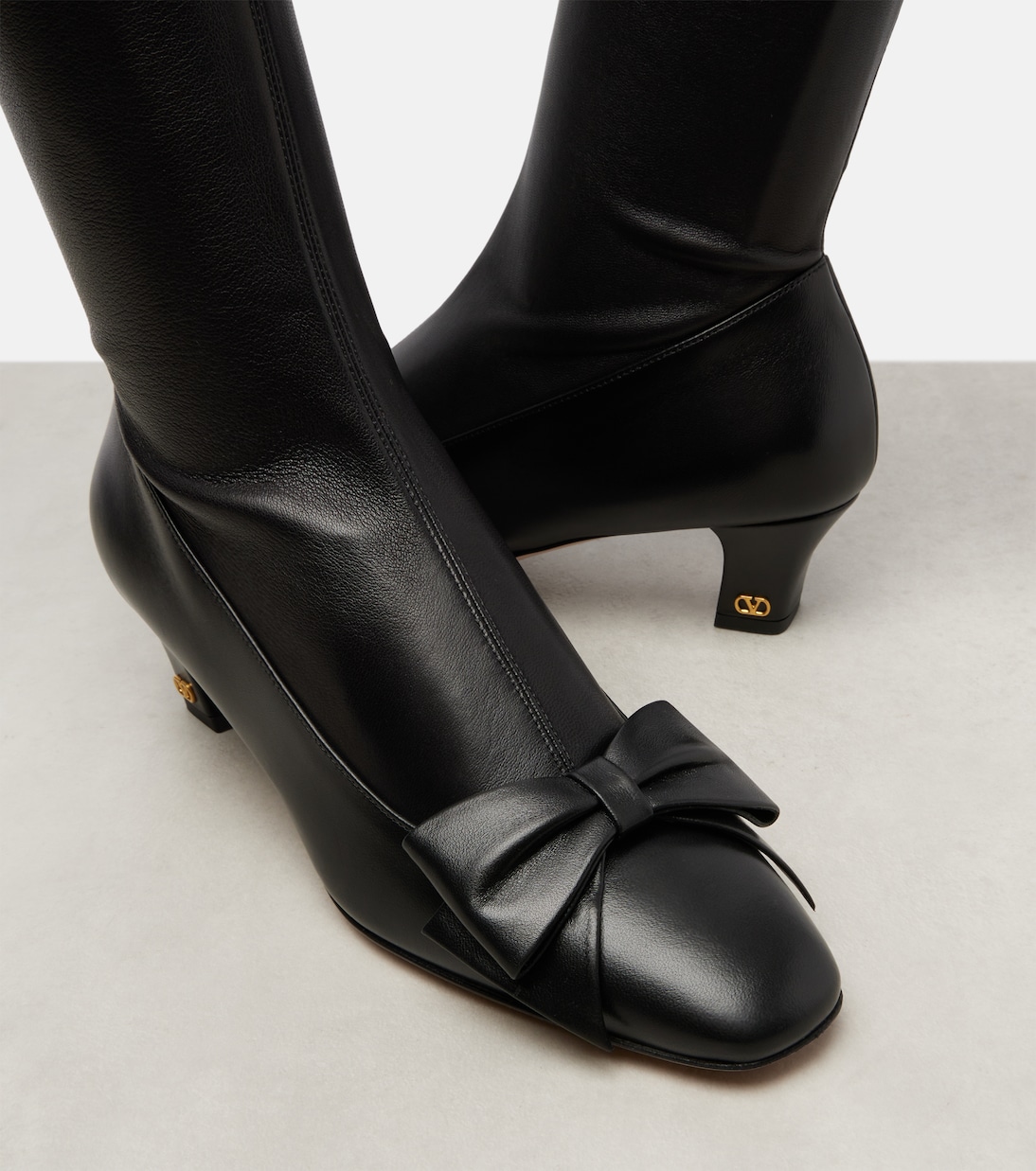 Культовый и в то же время сдержанный логотип VLogo от Valentino Garavani несет в себе наследие элегантности Дома. Он изображен на каблуках 45 мм ботинок Bowow, изготовленных из кожи и дополненных тональными бантами на союзке.