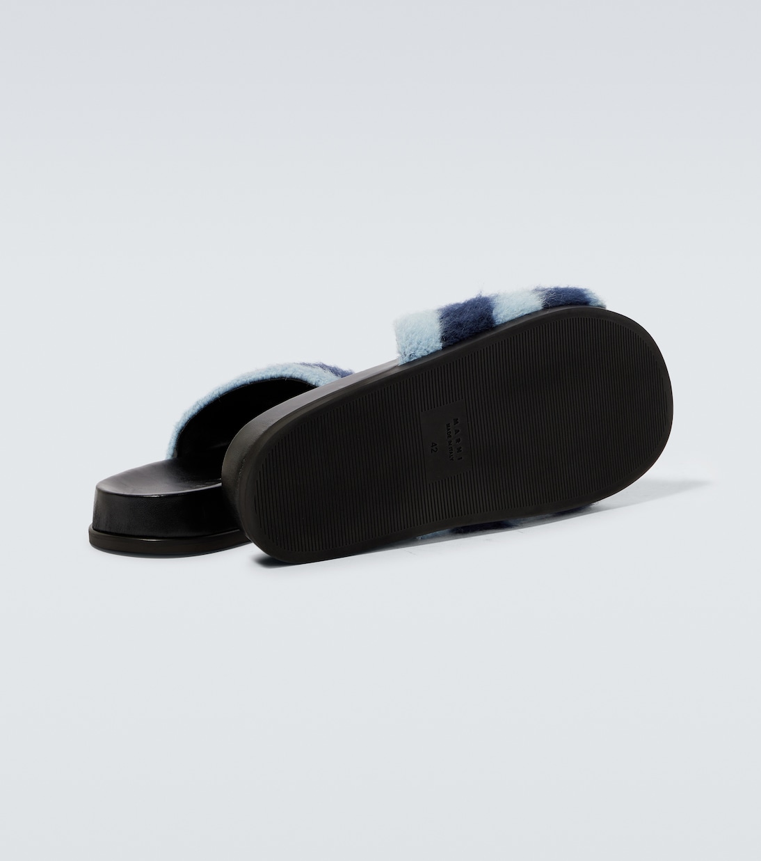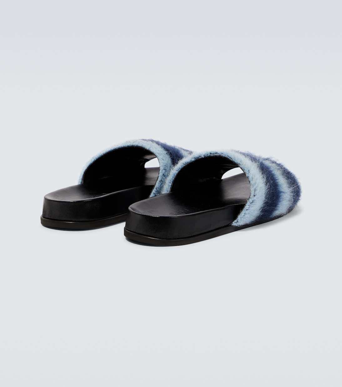 Лодочки Marni's Fussbett изготовлены из мягкой кожи с ремешками, похожими на мохер, и украшены узором в синие полоски.