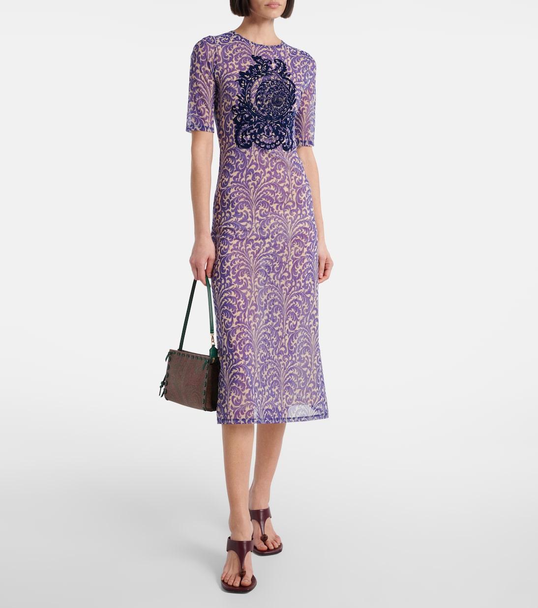 Любовь Джероламо и Роберты Этро к старинным принтам и узорам и сегодня остается краеугольным камнем итальянского бренда. Идеальный выбор для особых случаев: это платье миди выполнено из сетки с цветочным рисунком и дополнено элегантным мотивом из бархатного кружева спереди.