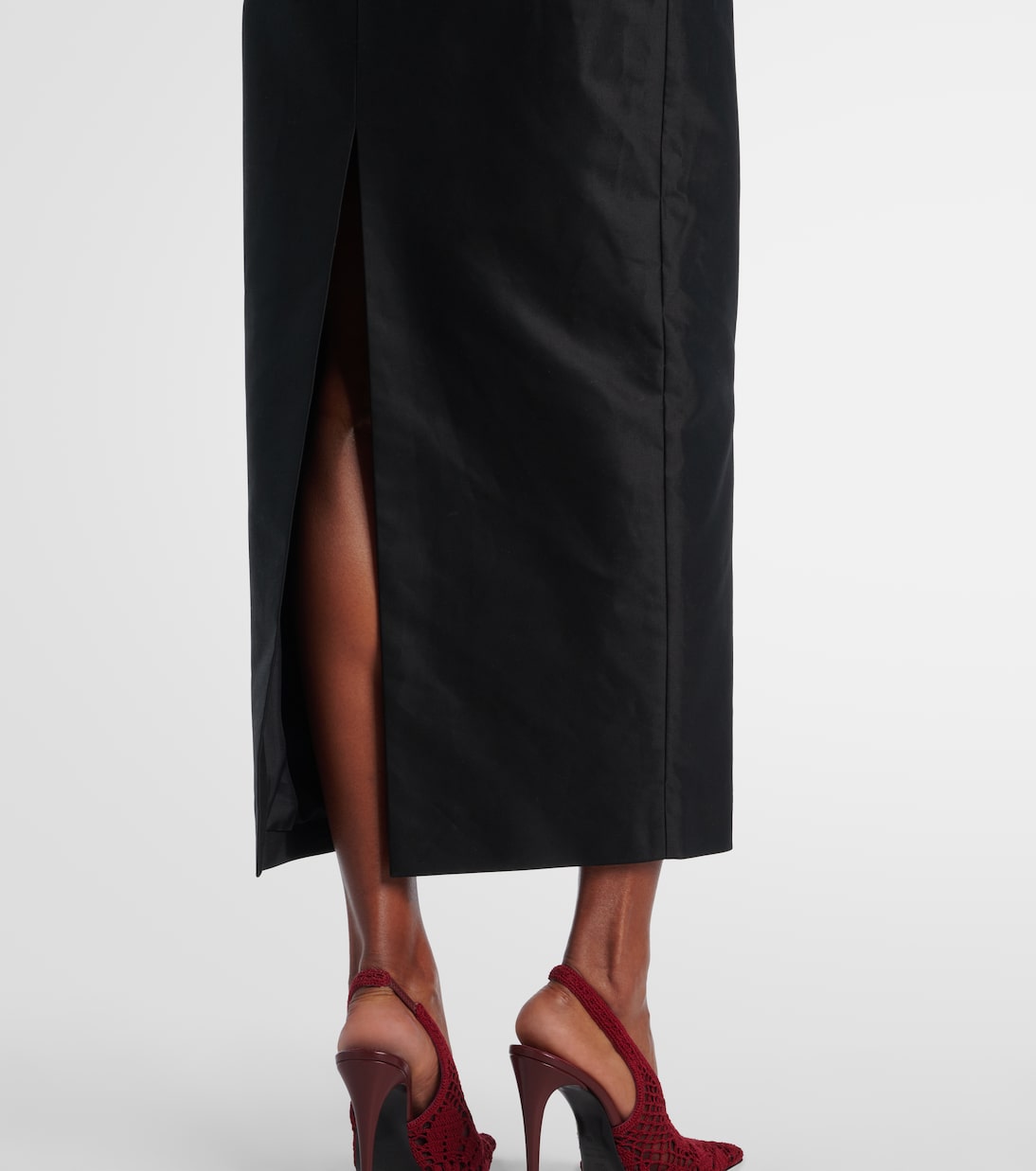 Магда Бутрим, которая встряхивает индустрию своей резкой современностью и мастерством исполнения, существует, чтобы расширять возможности. Это платье, выполненное исключительно из хлопка, имеет скульптурный стиль с вырезом на плечах, лифом-бюстье и преувеличенными бедрами.