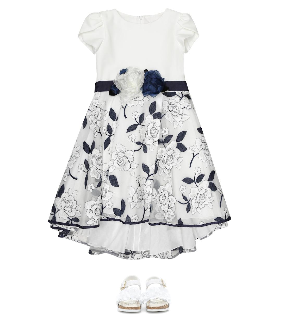 Маленькие девочки-цветочницы будут выглядеть безупречно в этом платье от Monnalisa. Белое платье с прозрачной юбкой из тюля украшено контрастной темно-синей цветочной вышивкой. Используйте подходящий пояс, чтобы подчеркнуть талию, завершив очаровательный эффект.