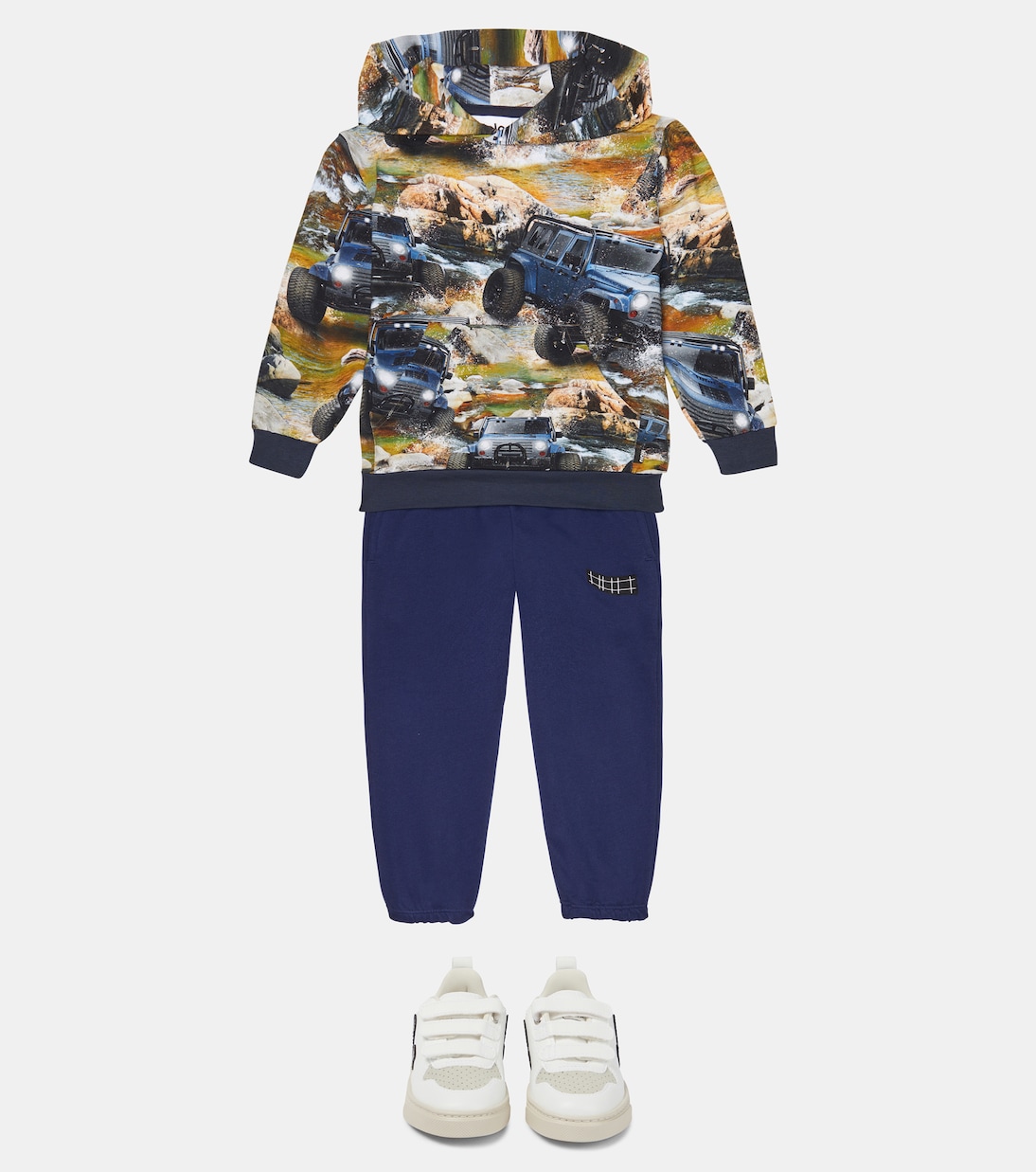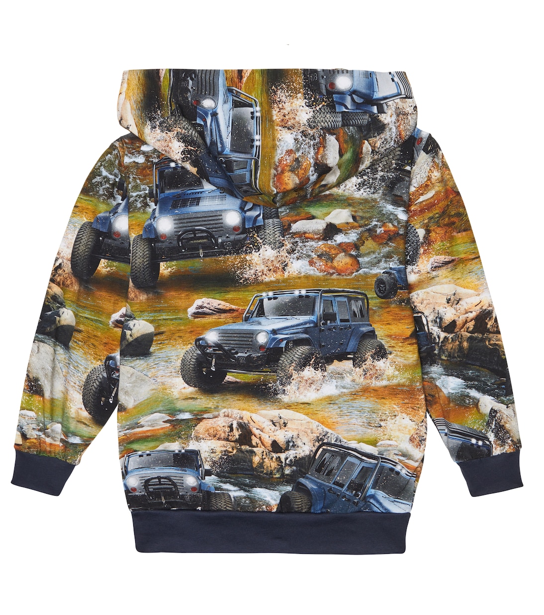 Маленькие искатели приключений будут в восторге от этой толстовки с капюшоном от Molo. Удобная модель выполнена из хлопка с ярким принтом джипа по всей длине, ребристым подолом и карманом-кенгуру.