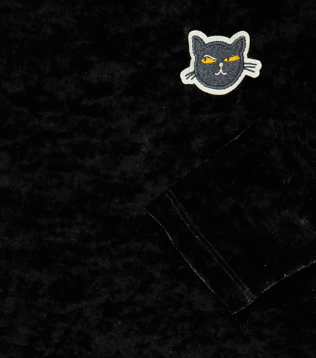 Маленькие любители кошек будут в восторге от этого топа с воротником-стойкой от Mini Rodini. Он выполнен из бархата и украшен вышитой на груди кошачьей мордочкой.