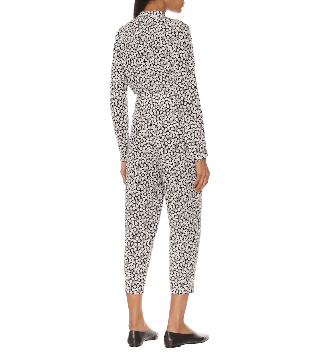 Маленькие мандарины - ключевой мотив последней коллекции британского бренда - украшают чернильно-синие брюки Cecilia от Stella McCartney. Они изготовлены из шелкового твила и отличаются высокой талией и зауженными брючинами-морковками с укороченными манжетами. Сочетайте его с белой рубашкой и сандалиями с ремешками.