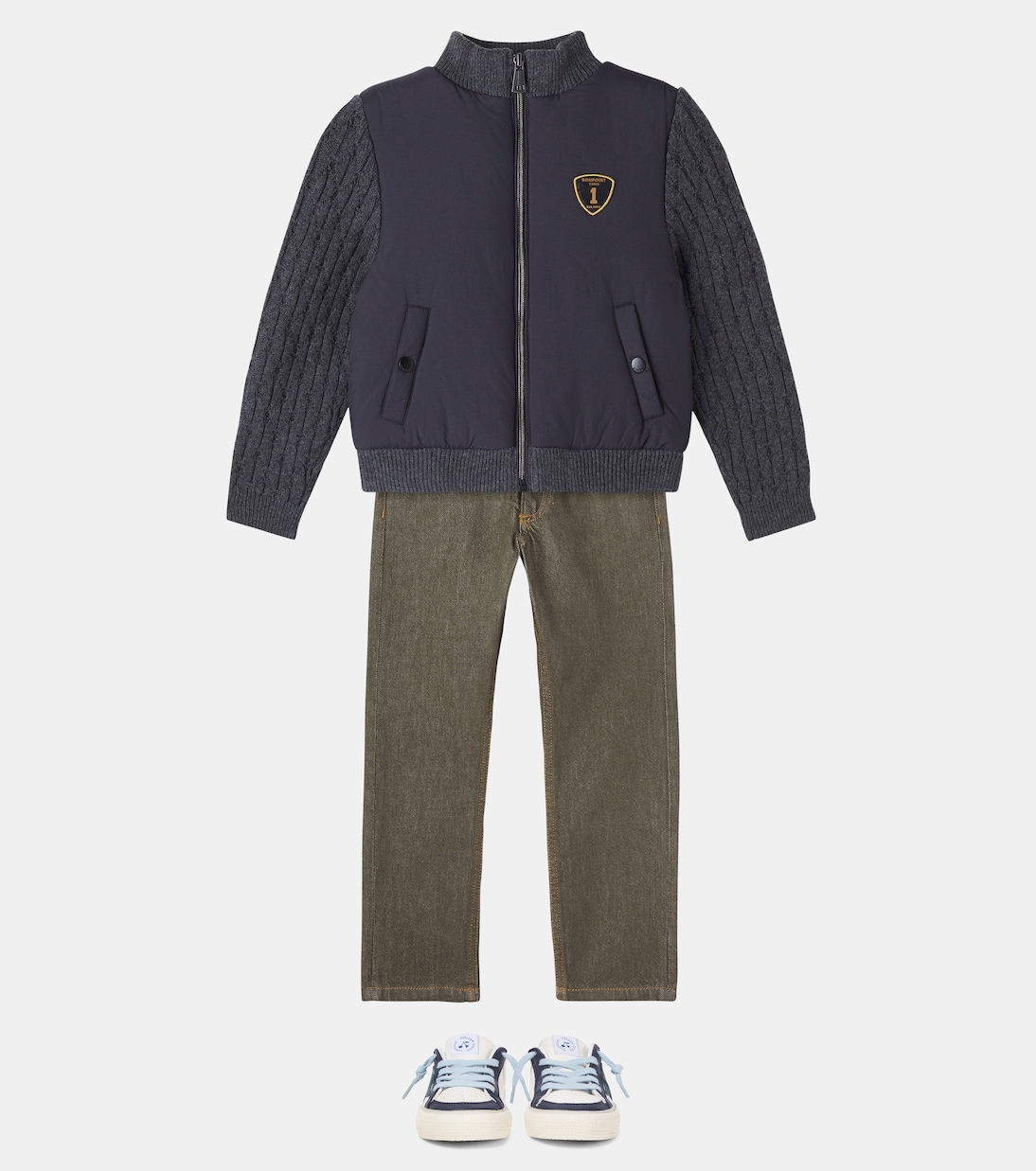 Маленькие образы доведены до совершенства в куртке Jarod от Bonpoint. Рукава выполнены из хлопка и шерсти в рубчик, а сверху нашивка с логотипом.