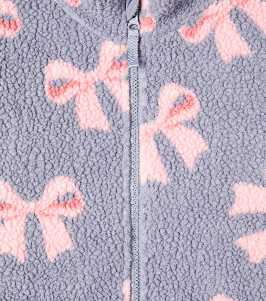 Маленькие ценители вкуса оценят бесконечно игривые модели от Konges Sløjd, продуманно созданные для качества и комфорта в любую погоду. Куртка на молнии Jody сшита из уютного флиса и украшена очаровательным узором в виде банта по всей поверхности.
