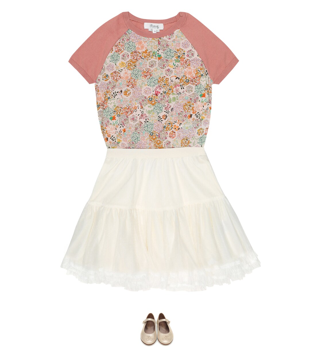 Маленьким танцовщицам понравится юбка Naia от Bonpoint. Эта белая модель выполнена из объемных слоев тюля, которые создают впечатление пачки.