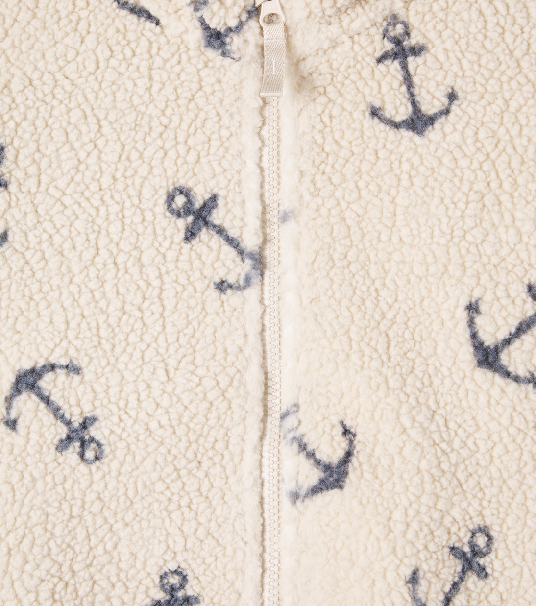 Маленьким ценителям вкуса понравятся бесконечно игривые модели от Konges Sløjd, продуманно созданные для качества и комфорта. Куртка Jody сшита из приятной на ощупь ткани с плюшевым ворсом, застежкой-молнией спереди и изображением якоря.
