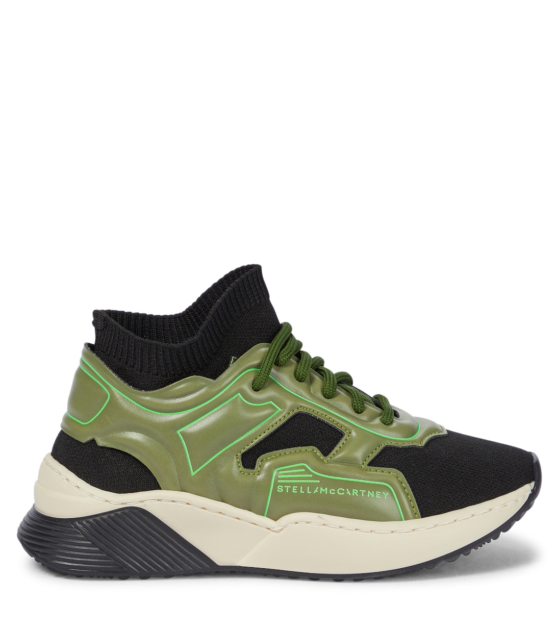 Малышам понравятся эти футуристические черно-зеленые кроссовки от Stella McCartney Kids. Верх в стиле носка со вставками из искусственной кожи, массивная резиновая подошва и шнуровка спереди.