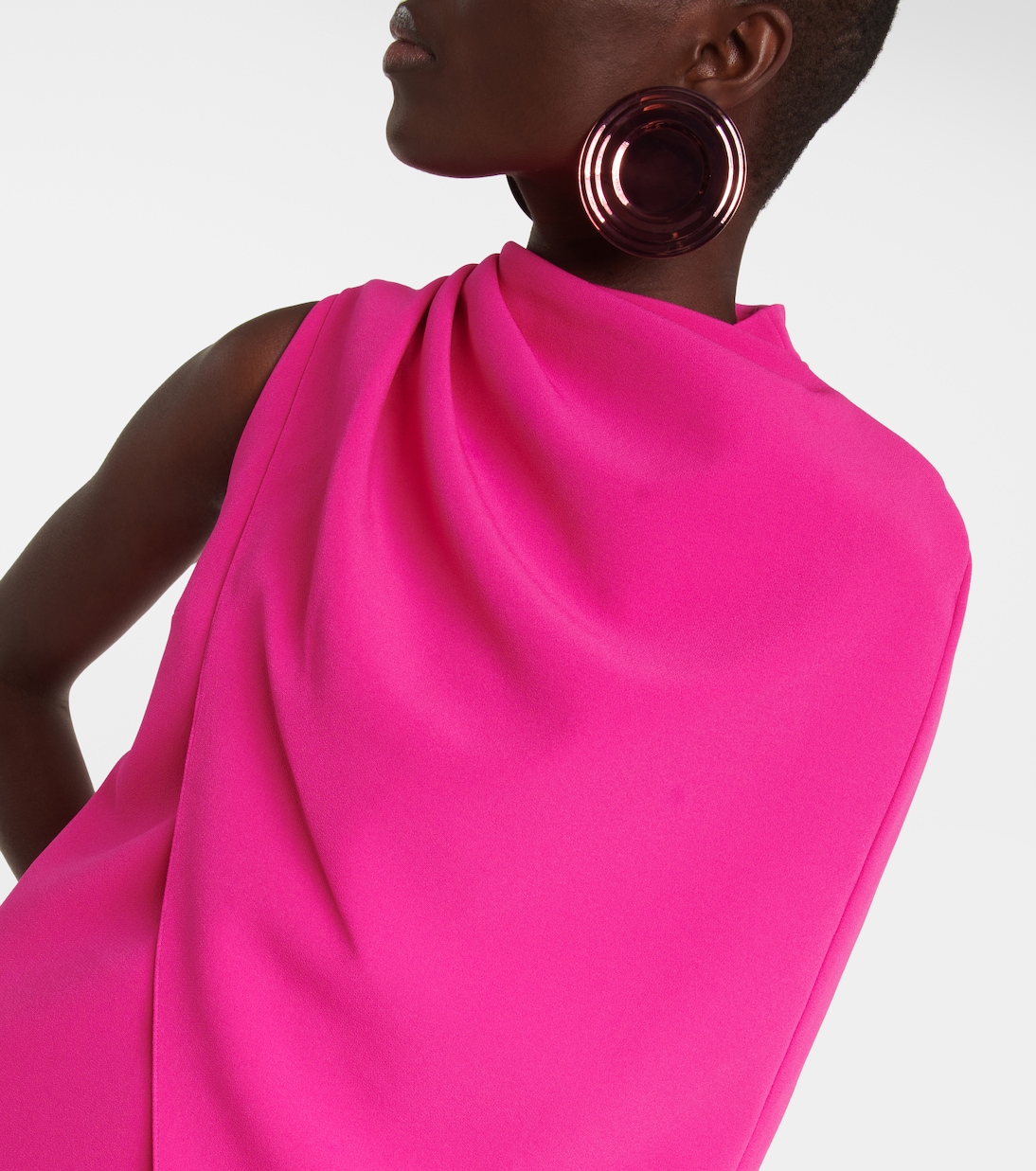 Мастер элегантного дизайна, Сафия создает мини-платье Margareta. Эта модель имеет асимметричный плащ и высокий вырез.