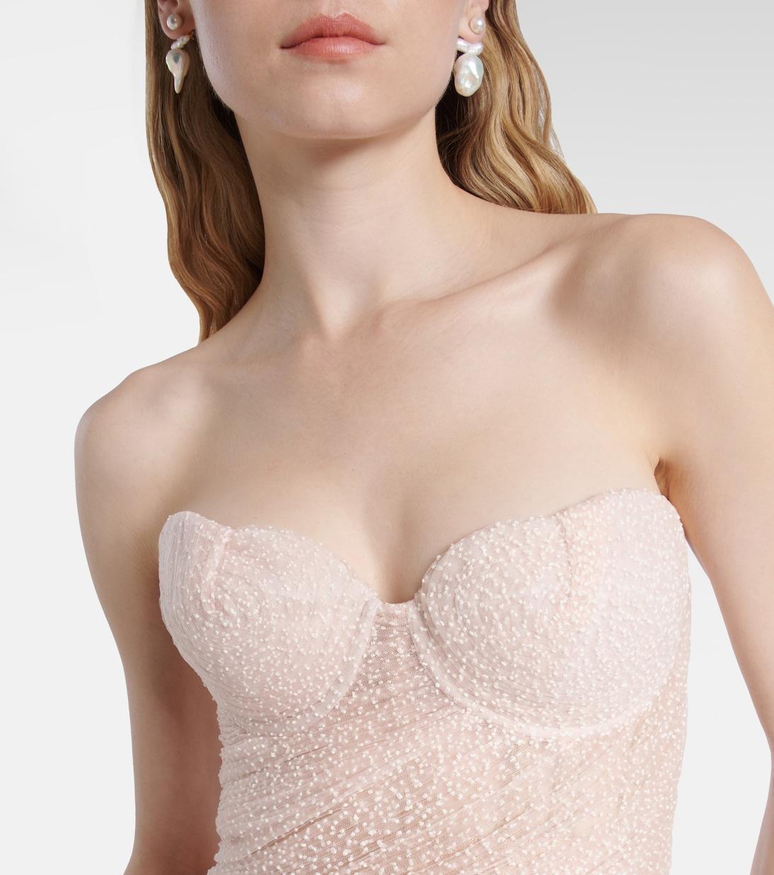 Мини-платье Dewi от Maria Lucia Hohan отличается лифом на косточках и чашками с подушечками. Этот дизайн демонстрирует оборки и поставляется с завязками сзади и потайной молнией для застежки.
